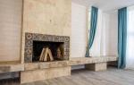 Первый этаж гостиная с камином, кухня-столовая, выход на террасу, гостевая спальня, санузел.
