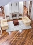 Конче-Заспа. КГ Южный Закрытый коттеджный городок среди соснового леса площадь дома 950 м.кв. четыре уровня, гостиная 85 м.кв. разделена на каминную зону и зону отдыха, отдельная столовая с камином, кухня, пять спальных комнат, шесть сан.узлов, основная спальня с камином, собственным сан.узлом и гардеробной комнатой, мансардный этаж с комнатой свободной планировки, бассейн, комната для персонала, сауна. Драгоценные материалы, паркетная доска, мрамор. Участок 40 соток, гараж на два автомобиля, беседка с комплексом гриль.