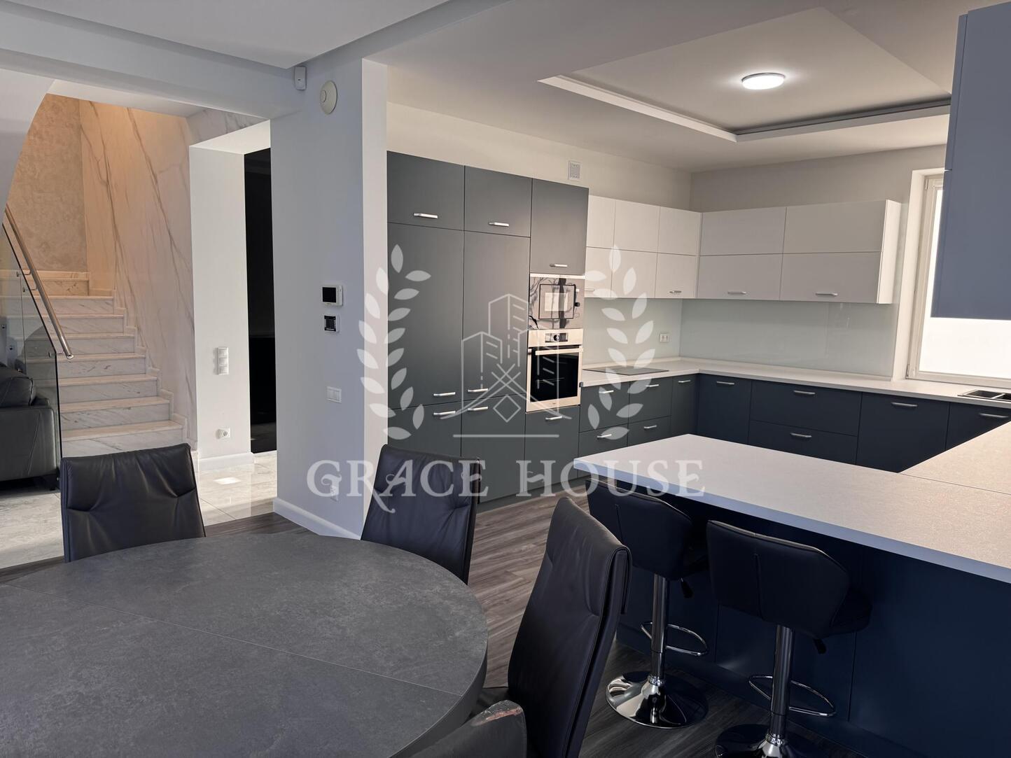 Полностью укомплектован современной мебелью и техникой. Натуральные материалы. Дом в аренду не сдавался. В доме теплые полы, кондиционирование. Дизайнерский ремонт с использованием высококачественных материалов.