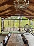 Дамба 7-й км, Конча-Заспа, Обуховский р-н Площадь участка: 0,22 га Площадь дома: 390м Этажность: 3 этажа Описание: 1-й уровень: гостиная с панорамными окнами, каминная с библиотекой, кухня с зоной столовой, гостевой с/у, гардеробная, постирочная, кладовая, бойлерная 2-й уровень: холл с выходом на террасу, панорамными окнами и зонами хранения, 3 спальни с с/у 3-й уровень: мастер-спальня с балконом и с/у, холл с выходом на террасу, балкон с витринными окнами Дом укомплектован мебелью и бытовой техникой Техническая оснащенность: Кондиционирование, подогрев пола, тепловой насос, электрокотел, твердотопливный котел, дизель-генератор, сигнализация, видеонаблюдение, автоматические ворота, водоочистка На территории: Ландшафтный дизайн, беседка с зоной барбекю (вода, мини-кухня), альпийская горка, фруктовый сад, бассейн с подогревом (скимерный), освещение, автополив, мини-огород Баня деревянная: 1-й этаж: баня, комната отдыха, купель, мини-кухня, топочная, с/у 2-й этаж: комната-отдыха (спальня) Домик охраны и персонала: кухня, спальня, с/у с бойлером и стиральной машиной Крытая парковка для 4-6 авто. Под парковкой есть помещение, в котором есть возможность оборудовать бомбоубежище