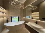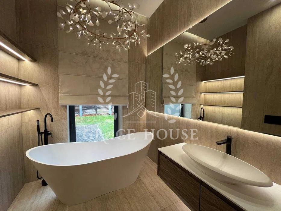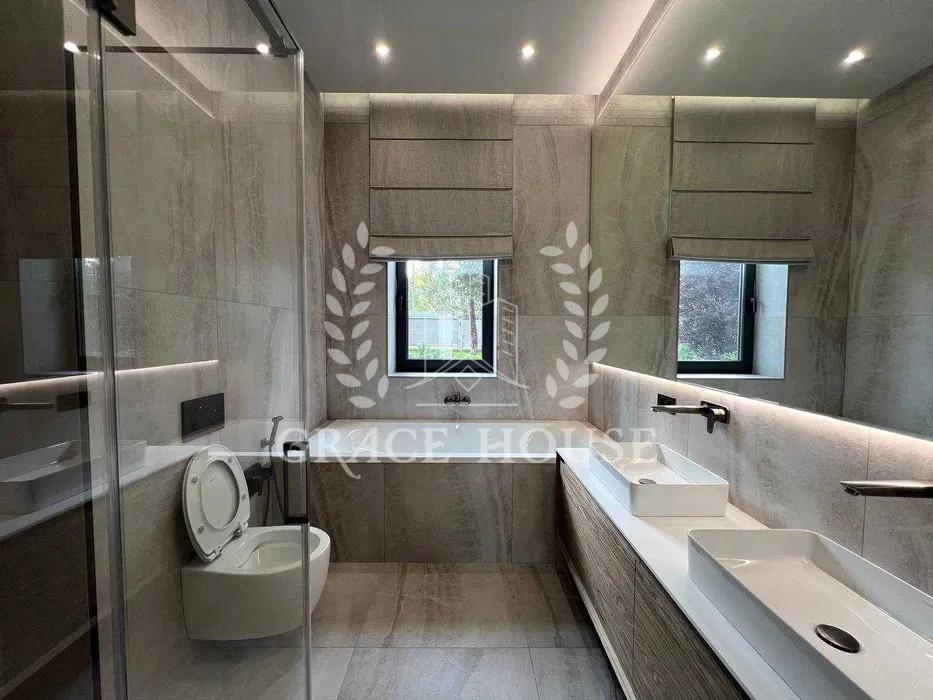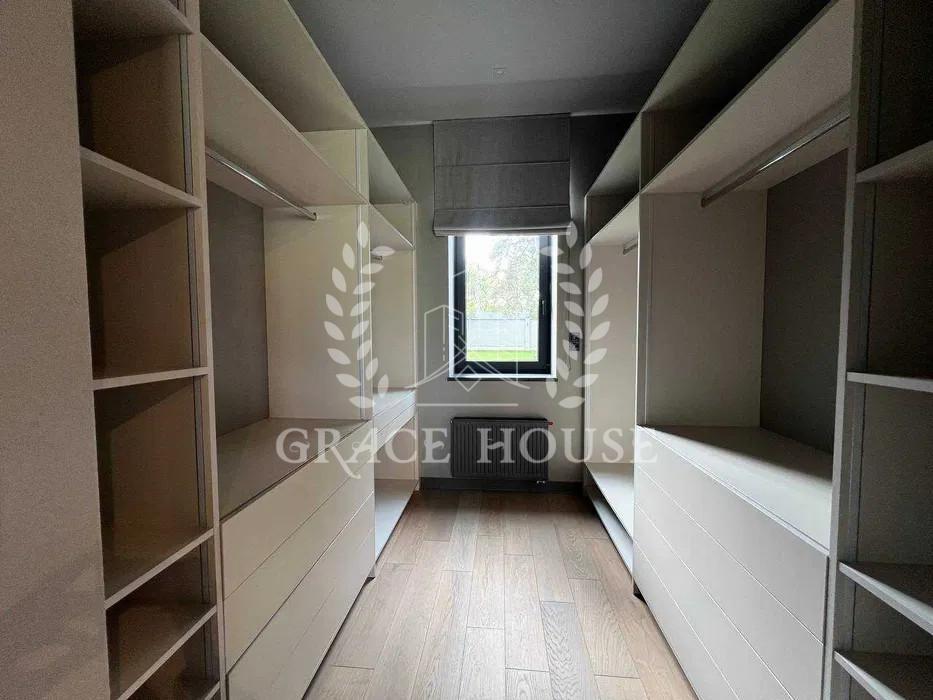 В доме четыре спальни: две из них Master Bedroom с собственными санузлами и гардеробными комнатами и две спальни поменьше. Хозяйская спальня – светлая, с просторным гардеробом и собственной ванной комнатой. Она расположена на оптимальном удалении от детской – идеально, чтобы чувствовать себя в комфортном уединении, когда в доме живет большая семья. Дом полностью меблирован и укомплектован необходимой техникой. Светлые стены, деревянные полы, благородные оттенки камня и песка. По всему дому предусмотрен теплый пол, под каждым окном установлены фанкойлы, датчики регулирования температуры в каждой зоне. Также есть техническое помещение и постирочная.