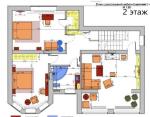 Второй этаж — это зона для отдыха и сна. Здесь расположены две просторные спальни, еще одна уютная гостиная и санузел.