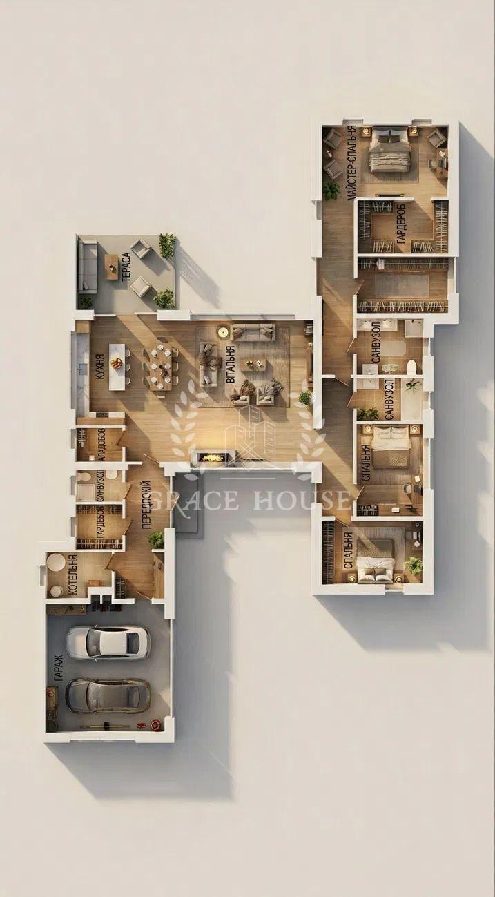 Дуже зручне планування, висота вітальні 5,5 метри!