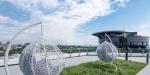 Два уровня, собственная огромная открытая терраса с лужайкой и бассейном, откуда открывается захватывающий вид на Днепр и Ботанический сад.