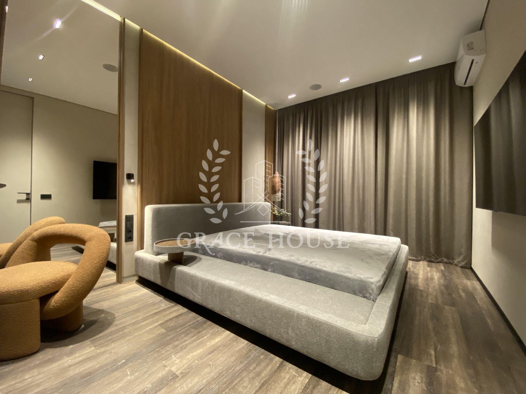 Ультра сучасні топові меблі та побутова техніка преміум класу. Штори (подвійні) на електроприводі, в стелі акустична система, підігрів підлоги, клімат контроль, пральна та сушильна машини, величезні два телевізори, диван трансформер, багато місць для зберігання речей. Все наповнення ТОП рівня.