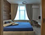 Функціональне планування: вітальня, дві окремі спальні (одна з них може використовуватись як кабінет), кухня, гардеробна, ванна кімната з душем і санвузлом, балкон.
