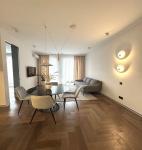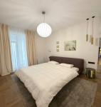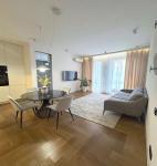 Квартира щойно після якісного ремонту — ще ніхто не проживав. Планування включає кухню-студію, дві окремі спальні, два санвузли та гардеробні кімнати у кожній спальні. Встановлені кондиціонери та бойлер. Повністю укомплектована сучасними меблями та технікою — готова до заселення.