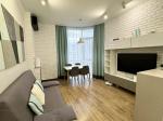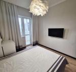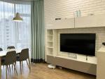 По всій квартирі встановлено теплу підлогу, міжкімнатні двері — італійського виробництва. У спальні — зручне двоспальне ліжко 160×200 та щільні штори-блекаут. В наявності два телевізори Samsung Smart TV (55'' та 43''), а також три місткі шафи для зберігання речей.