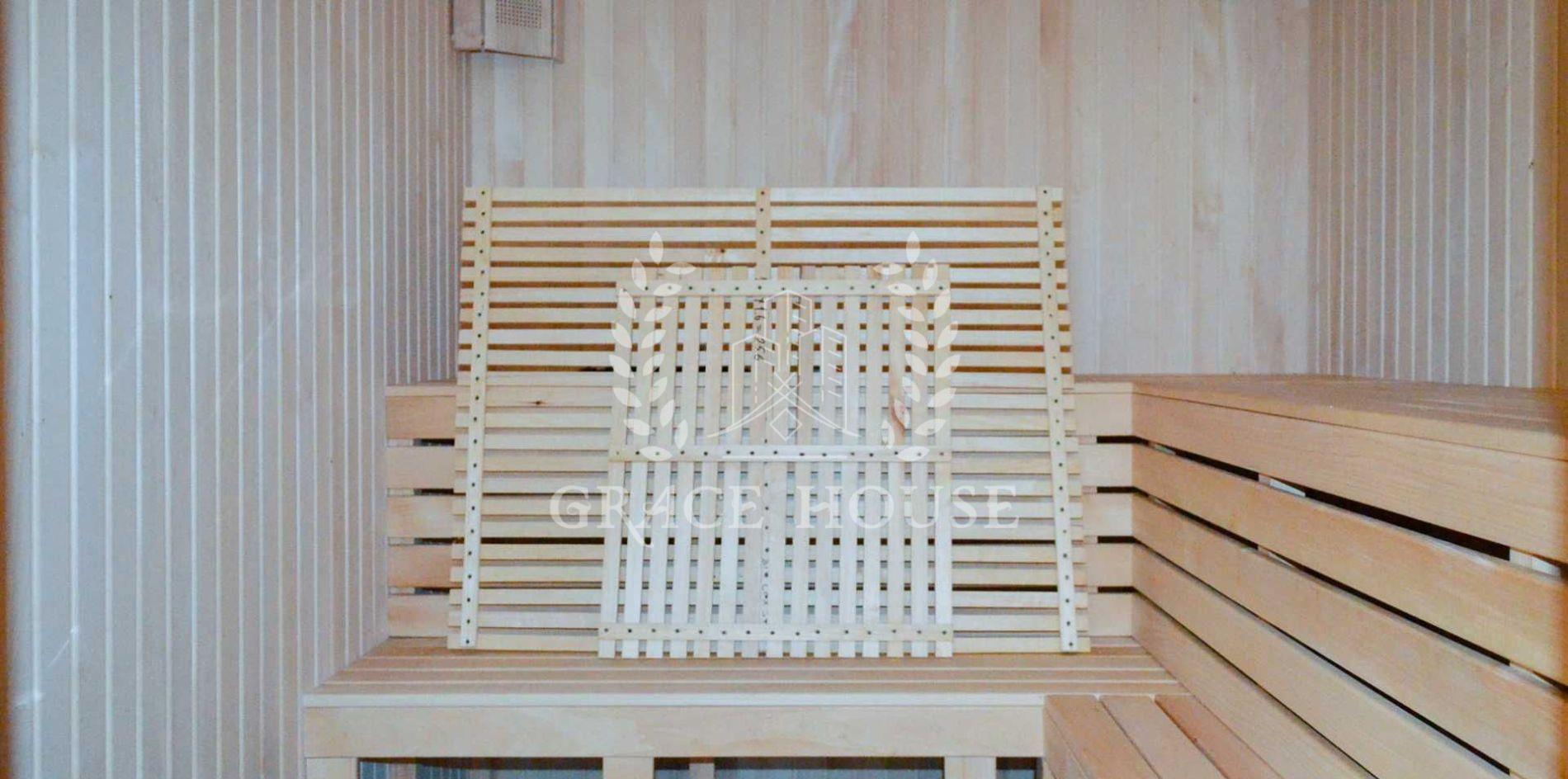 Гостиная с камином, кухня-столовая, 5 спален, гардеробные, шкафы-купе, сауна, гараж.