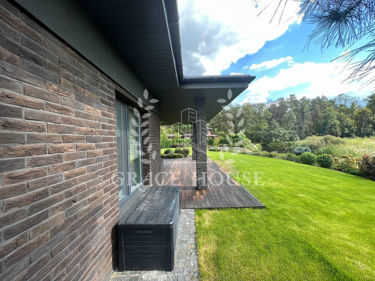 с. Ходосеевка КГ «Витаград». Дом 160 м2, в современном стиле. Участок: 10 соток, ландшафтный дизайн, автополив, выход на канал, Голосеевский заповедник, видеонаблюдение, навес для авто. Действующий газовый камин, геотермальный насос, полы, стены зимой теплые, летом-холодные-энергосберегающие. Вода- артезианская скважина 160 м централизовано на городок. Генератор на воду, свет есть всегда. 1 этаж : кухня-студио, действующий газовый камин, кабинет, санузел, котельная комната. 2 этаж: мастер спальня с гардеробом, санузел, детская или гостевая спальня с санузлом.