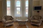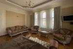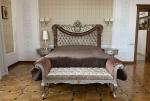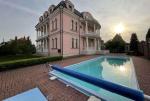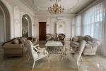 Долгосрочная аренда резиденции в стиле барокко на Жулянах. Локация: Киев, Соломенский р-н, ул. Мятная (в пешей доступности ВДНХ). Планировка: большая гостиная с камином (в доме 3 действующих камина), кухня, столовая, 4 спальные комнаты, игровая комната, рабочий кабинет с библиотекой, мансардный танцевальный и выставочный зал с зеркалами в пол, 5 ванных комнат и санузлов, гардеробные, сауна, 2 джакузи, бильярд, кинотеатр с проектором, гараж на 2 автомобиля с зарядками для электромобилей, погреб, террасы и балконы с выходом из каждой комнаты. Технические характеристики: - этажность: 3+0 этаж + погреб; - площадь дома: 800 м2, земельного участка: 18 м2; - сожжений: 4. В доме сделан дорогостоящий ремонт с использованием сусального золота, мрамора, оникса, редких пород дерева, бархата, шелка, габиленов, хрусталя. Лепнина прорисована и вылита под индивидуальный заказ по образцам из английских дворцов. На территории: закрытый двор с ландшафтным дизайном, бассейн 10 х 3.5 м с подогревом до 35 градусов, беседка с панорамными окнами и отоплением, видеонаблюдение 24/7 (есть отдельный дом для охраны), въезд на территорию частного сектора под круглосуточной охраной. Дом арендовался как резиденция иностранного посла, имеет все необходимые параметры и документы для повторного обретения данного статуса. Обеспечен высокий уровень безопасности. Рядом находятся: ВДНХ, ЖК Новая Англия, Ипподром, Столичный рынок, Эпицентр, Метро, Авторынок, ТЦ Республика, школа, детский сад, клиники, салоны красоты, рестораны, кафе, супермаркеты