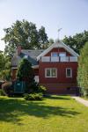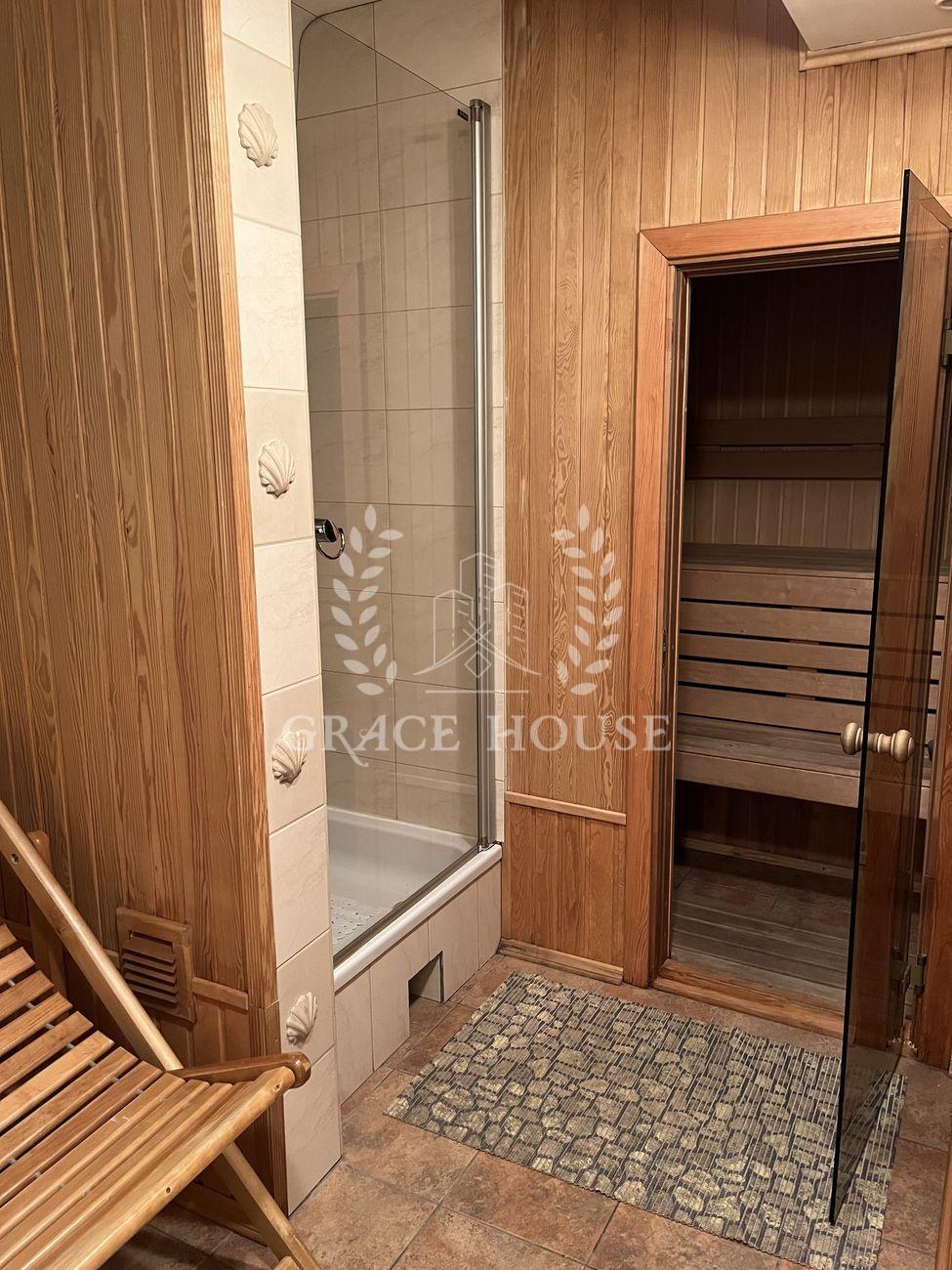 Основной дом 266 кв.м, двухэтажный с цокольным уровнем в котором расположены два гаража, сауна с комнатой отдыха, постирочная, а так же кладовые и технические помещения. На первом этаже находиться гардеробная, кабинет, санузел, кухня-гостиная с выходом на террасу и конечно же камин. На втором этаже расположены три спальни и один санузел.