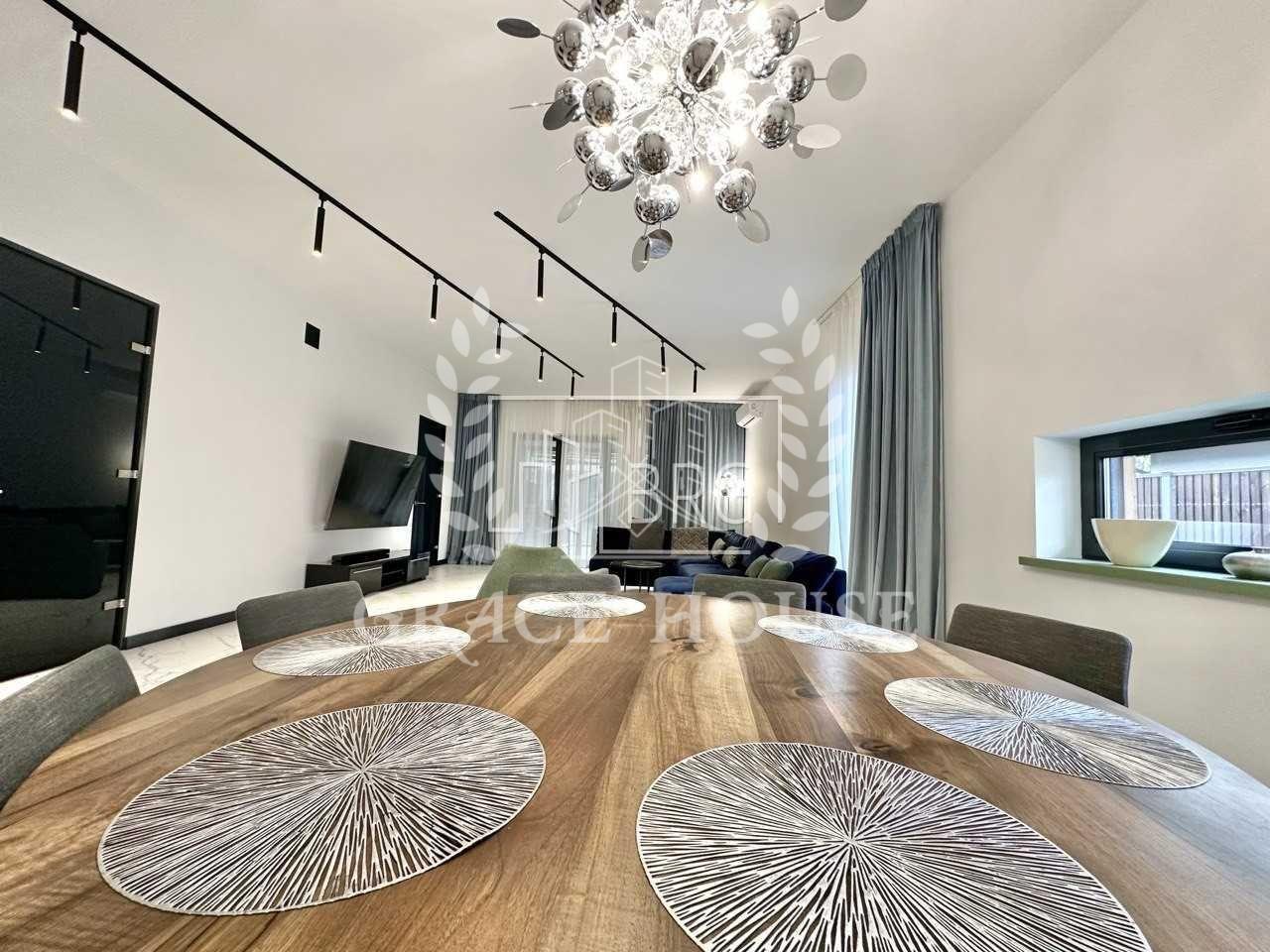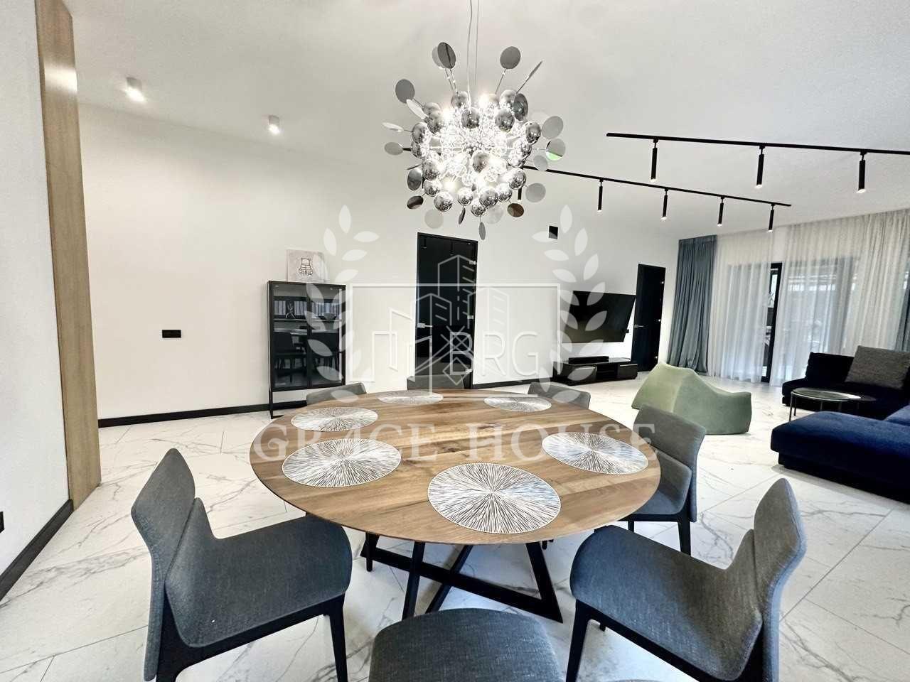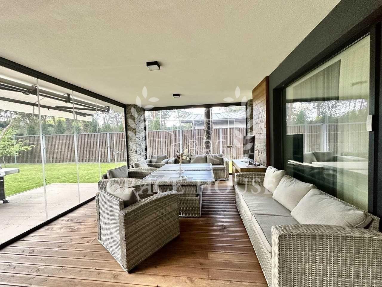 Авторский дизайн, дом укомплектован мебелью и техникой. Кондиционирование, подогрев пола, датчик движения в доме, дистанционная система охраны