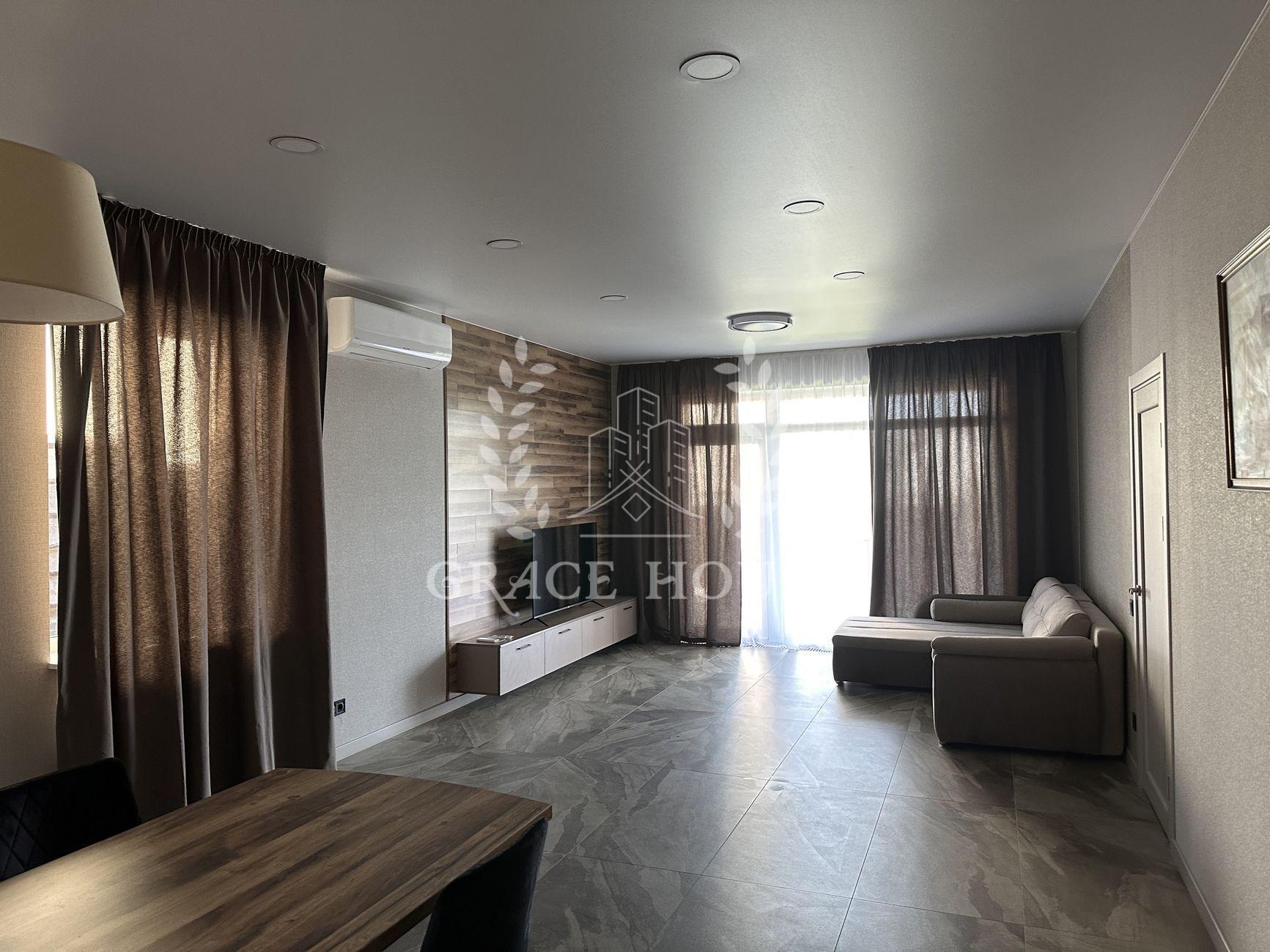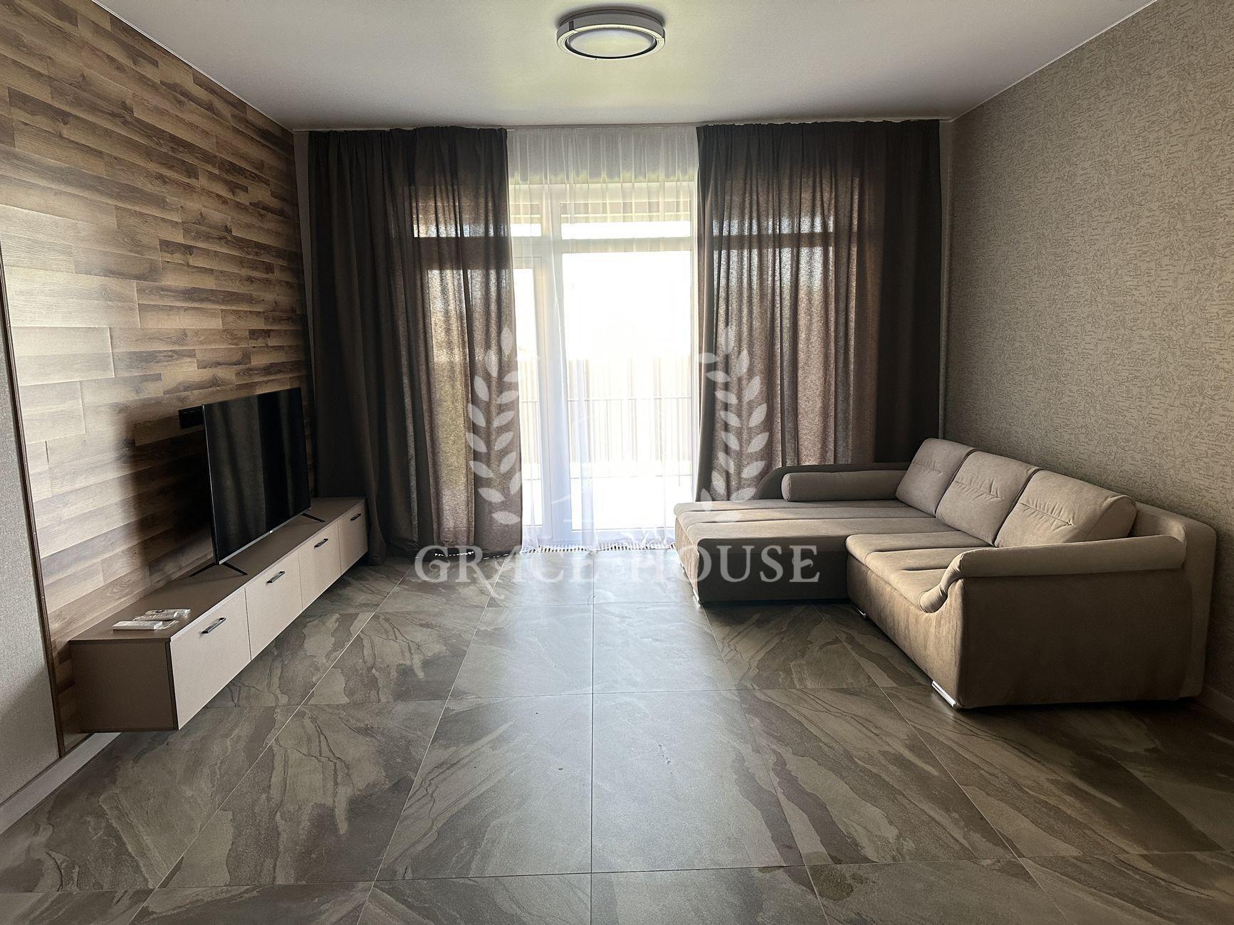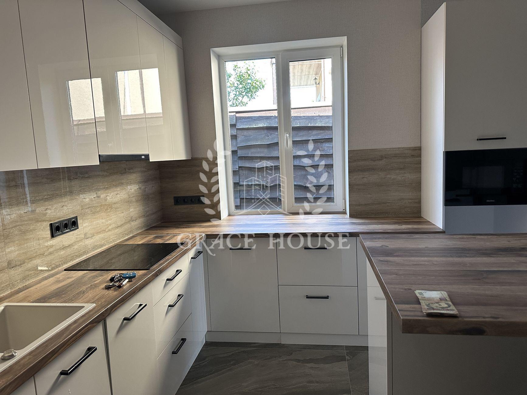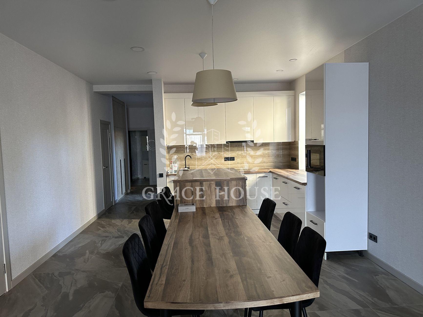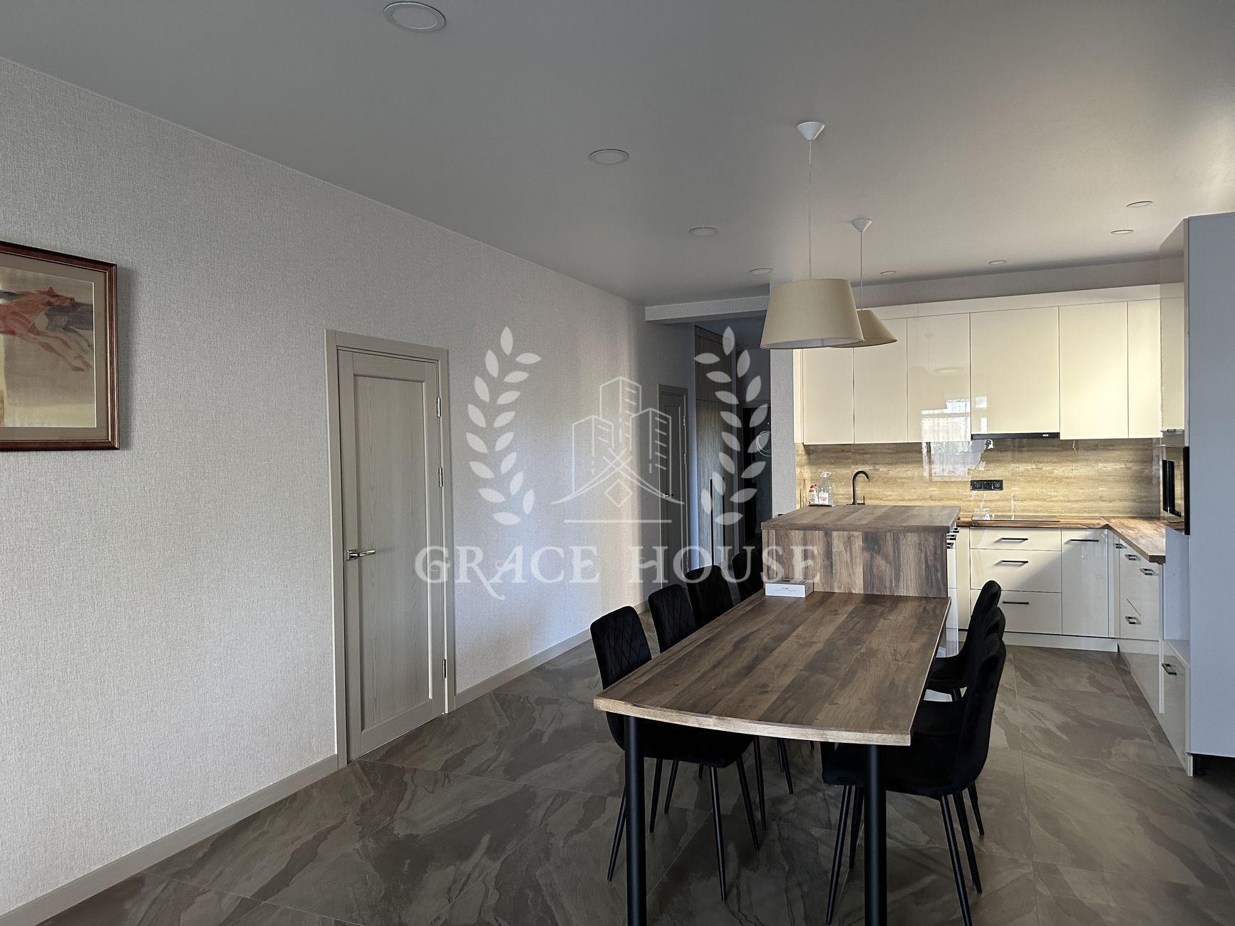 В доме - 3 комнаты и большой open-space зал-кухня с выходом на террасу, 2 гардеробные комнаты (одну из них можно использовать в качестве укрытия), 2 сан-узла. Отдельно - котельная, в которой находятся электрокотёл, бойлер на 200 л и очистные фильтры для воды. Дом полностью меблирован и укомплектован новой бытовой техникой (стиралка, духовка, микроволновка, посудомоечная машина, варочная поверхность).