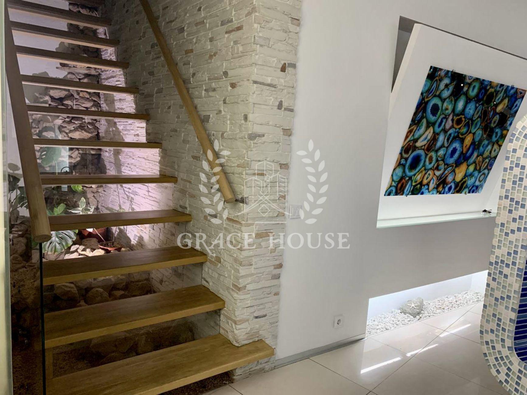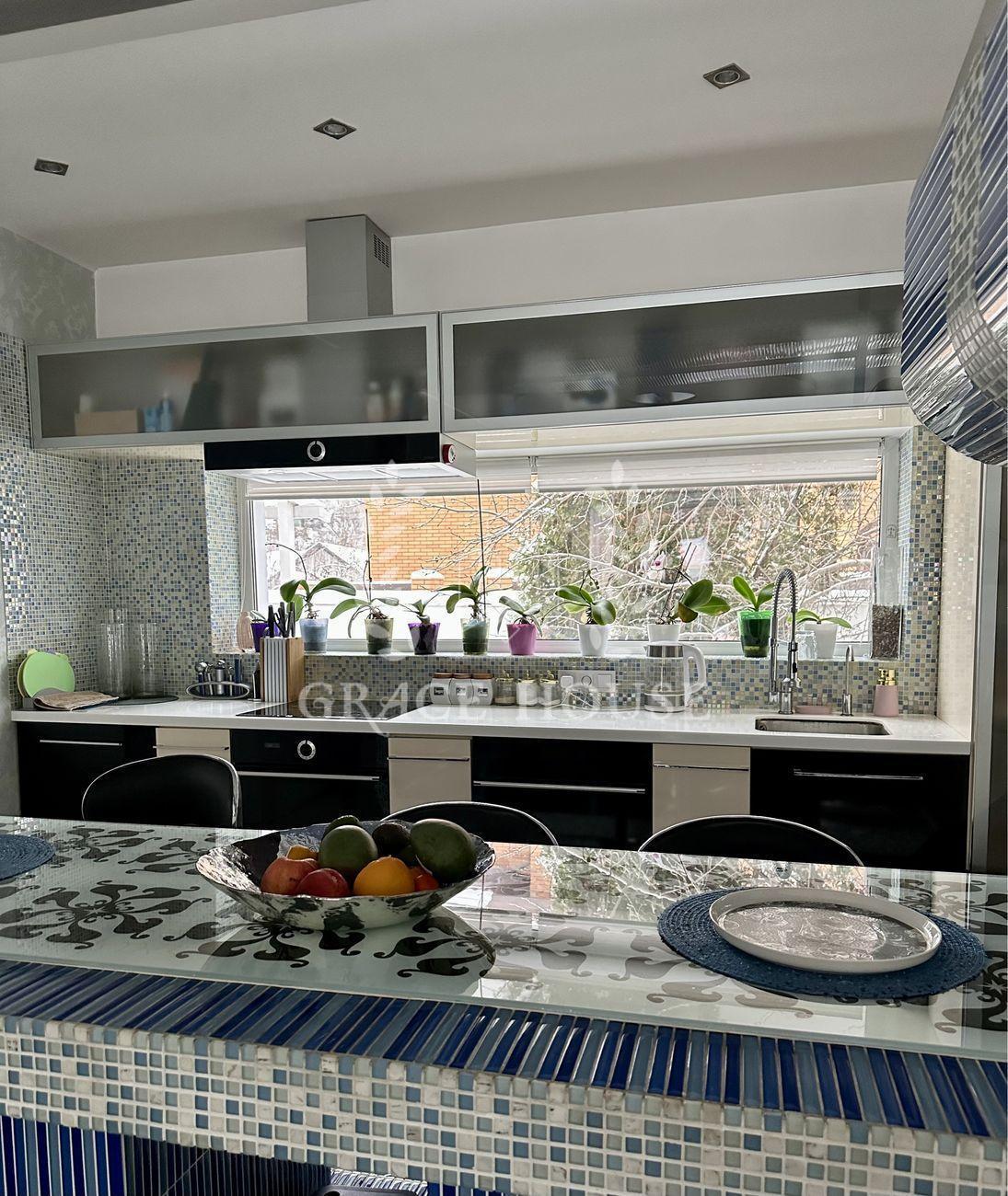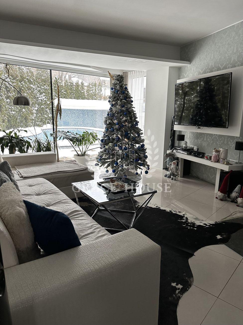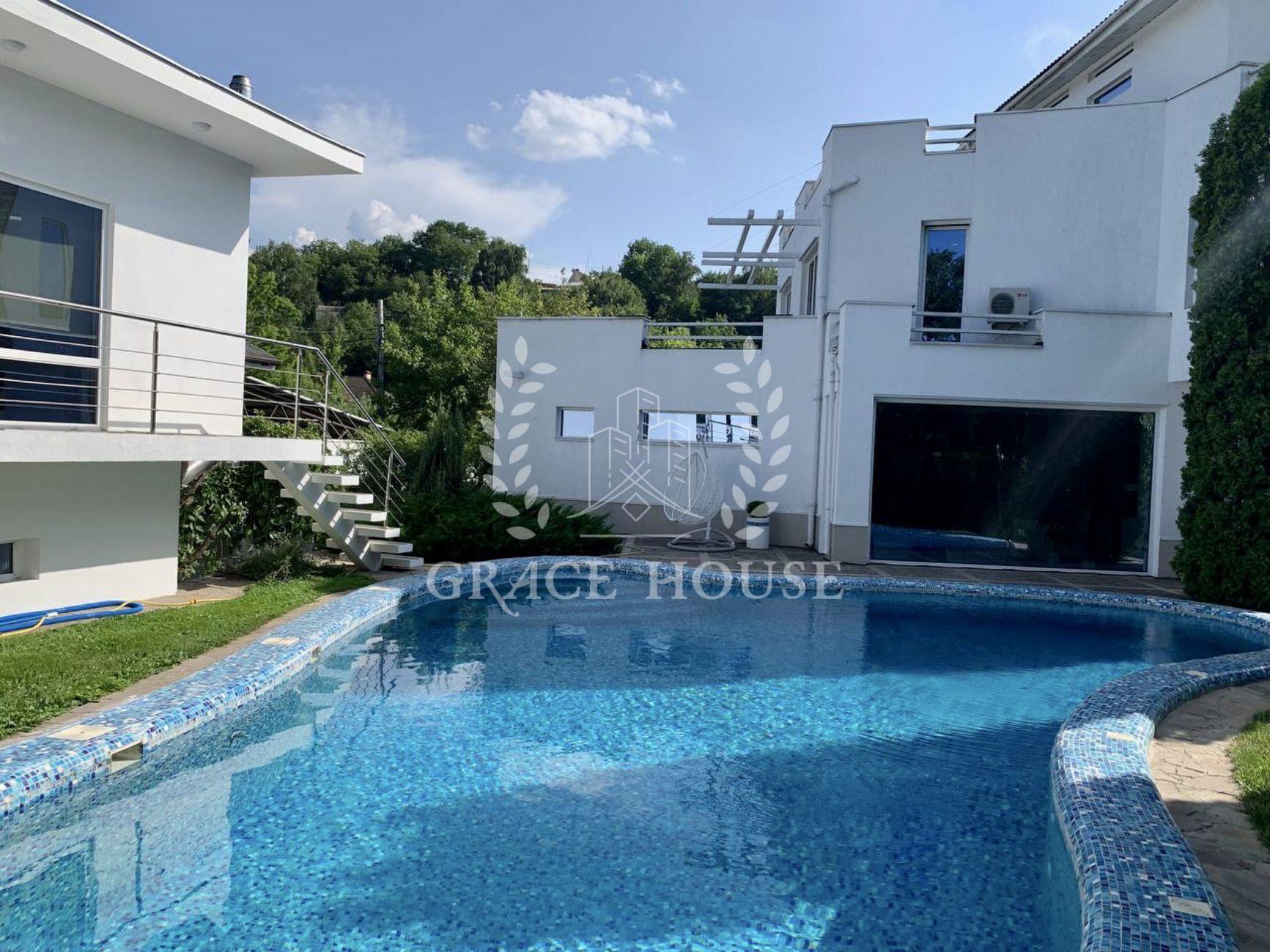 дом с бассейном в стиле Hi-Tech в Голосеевском районе. Современный авторский дизайн. Идеальное расположение. Рядом Голосеевский лес, озера. S - 270 кв.м., 3 этажа, участок 10 соток. На территории: основной дом, открытый бассейн с подогревом и душем, зона отдыха с лежаками и зонтиками, зона барбекю с мангалом, барная стойка, гостевой дом, гараж. Основной дом (270 кв.м): панорамное остекленение, просторная гостиная с камином, кухня с островом, столовая на 8 персон, 3 спальни , гардеробная, кинотеатр, сауна, спортзал, 3 су, 4 террасы, аквариум, озеленение. Гостевой дом (57 кв.м.): 2 комнаты, с/у. Укомплектованы всей необходимой мебелью и техникой .Теплые полы. Отопление газовое и на пеллетах. Канализация септик, генератор дизель 15 кВт, вода трубопровод. Благоустройство участка: выполнен ландшафтный дизайн, живые изгороди, сад, декоративные кустарники, пихты, ели, туи, оформлен газон, дорожки из тротуарной плитки, искусственный водопад, освещение. Участок 10 соток по всему периметру огражден забором. Имеется 2 входа. Отличные соседи, тихая улица.