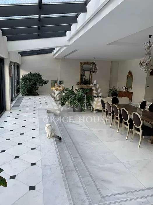 Дом на Большой дамбе с выходом на Козинку. Общая площадь дома 515кв.м, 2 этажный, на 1 этаже большая гостиная со столовой 233кв.м, с панорамными окнами, 2 камина, мраморные полы с подсветкой и подогревом,, кухня, гостевой санузел, на 2 этаже 3 спальни, детская с игровой комнатой и с 2 спальнями, 2 санузла, большая терраса с видом на сад и речку. В доме установлена система ,,умный дом,, система принудительной вентиляции и регуляции с контролированием уровня влажности. Отопление - газовый котел, теплые полы, сплит система, очистка воды. Участок 12 соток, бассейн с противотоком, очистка бассейна без хлора. Причал, эллинг,