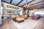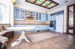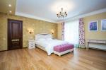 На втором этаже две спальни с двуспальными кроватями в зоне отдыха и рабочими зонами с телевизорами, санузел с ванной и душем. В доме кондиционеры, водяной подогрев полов, встроенный пылесос, энергосберегающее освещение.