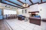 На 1 этаже коридор, санузел, единственное пространство с обеденной зоной, зоной отдыха с камином и телевизором, угловым диваном с нишей и двуспальным раскладным местом, зона завтрака, кухня с духовкой, посудомоечкой, микроволновая печь, спальня, с/у с душем, спальня с двуспальной кроватью, балкон, телевизор, санузел с ванной и душем, туалет.