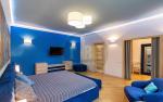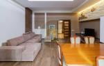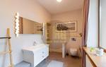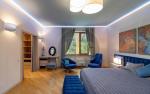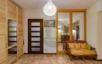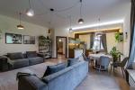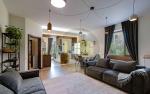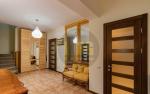 На вході — простора вхідна група з великою гардеробною. Далі — кухня-вітальня, обладнана всією необхідною технікою та меблями, а також кабінет для комфортної роботи.