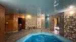 На первом этаже есть: гараж на 1 авто, прачечная, санузел, болевая комната, небольшой бассейн с подогревом воды, турецкая и инфракрасная сауна и кухня, которая совмещена с камином.