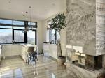 Центральное водоснабжение с системой водоподготовки в доме, канализация – биосептик, электричество 30 кВт, генератор на 22 кВт, интернет обычный и Starlink, тепловой насос + газовый котел. Система отопления – теплый пол в жилой части дома, батареи в нежилой части.