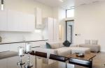Очень большая кухня гостиная с шикарным диваном, большой обеденный стол, выход на террасу.