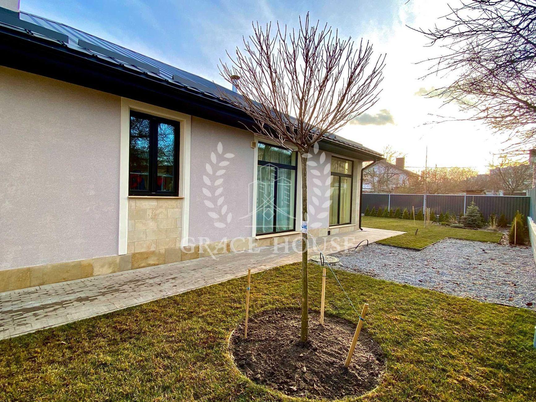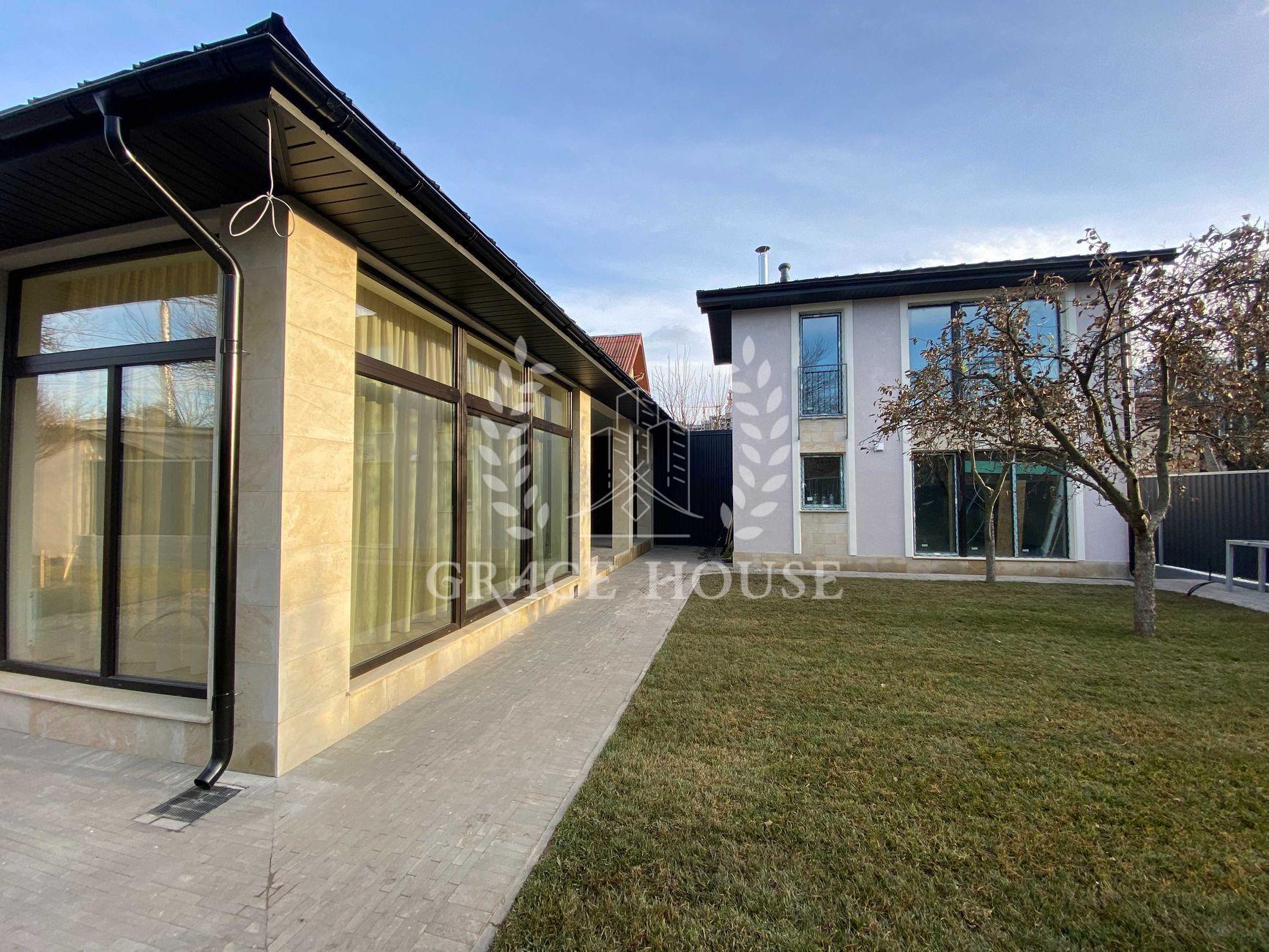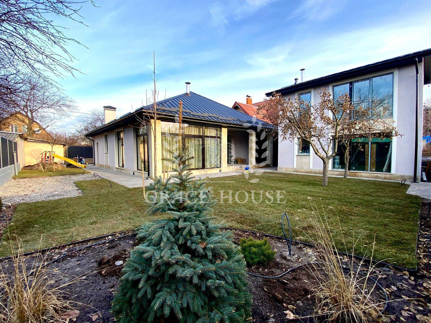 Основний та гостьовий будинок на ділянці 6 соток. Основний будинок загальною площею 125 кв. м., два поверхи. Планувальне рішення включає велику кухню вітальню з каміном і виходом на терасу, три спальні, два санвузли, вбиральню, котельню.