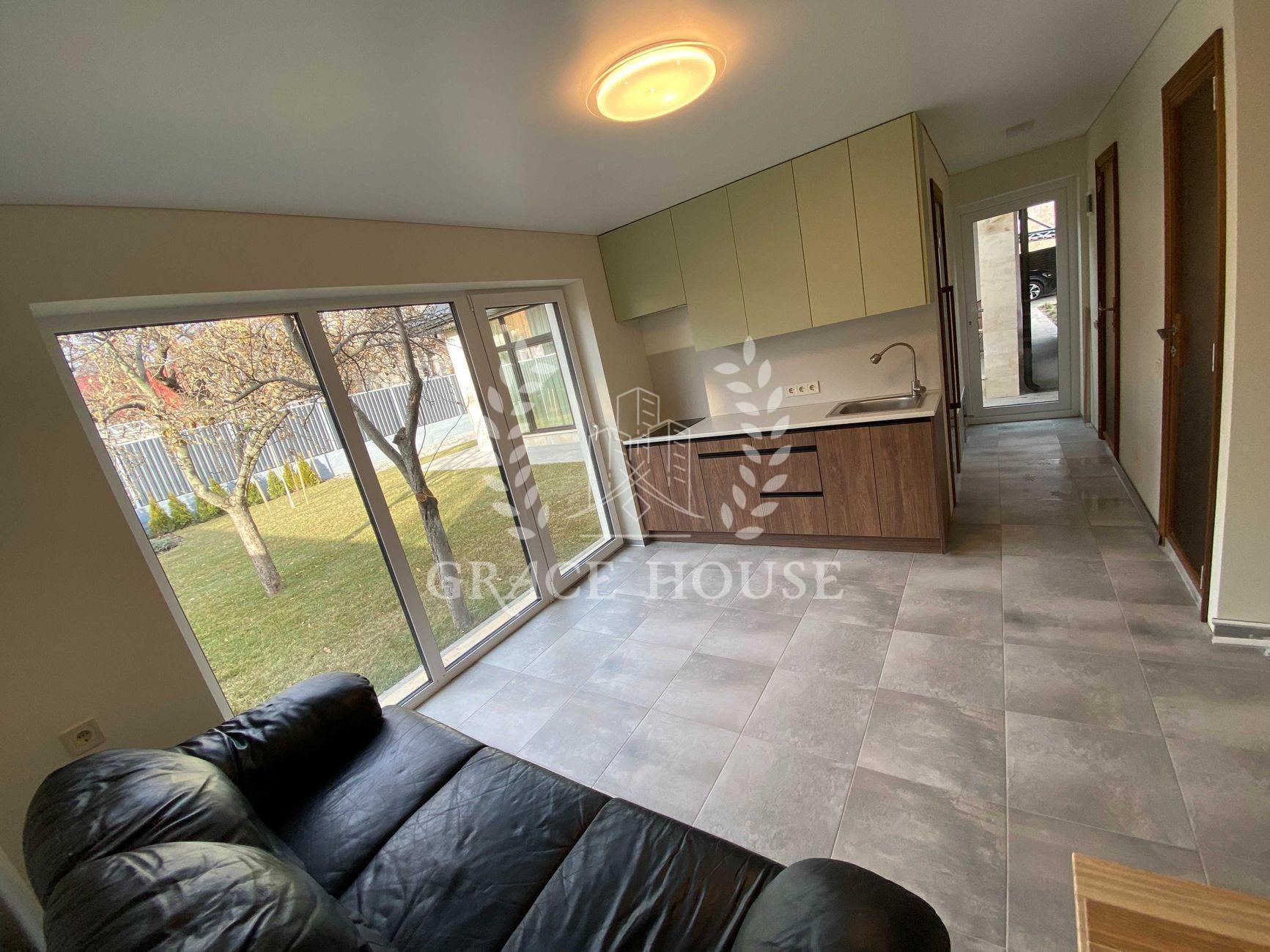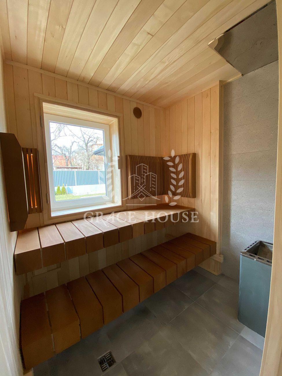 Гостьовий будинок загальною площею 50 м квадратних, складається з кухні вітальні, сауни, з/в душової та вбиральні на першому поверсі. На другому поверсі дві спальні. Додатково є обладнаний бомбосховище з вентиляцією. Земельна ділянка 6 соток, з ландшафтним дизайном та озелененням, навіс на два авто автоматичні ворота, зона барбекю.