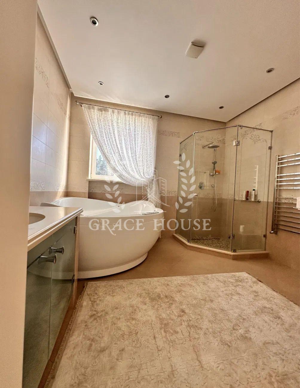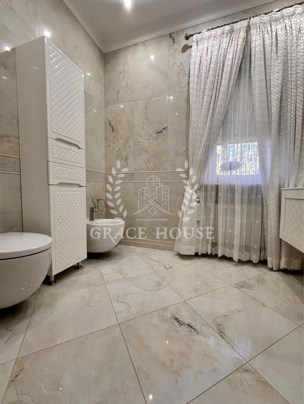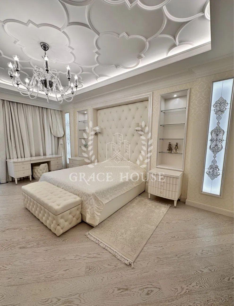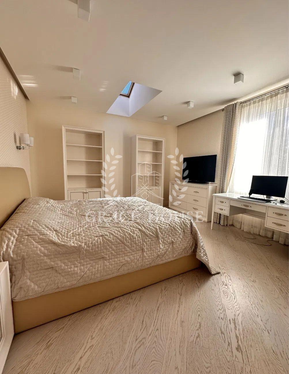 Розкішна господарська спальня з власним санвузлом та гардеробною, дитяча кімната, гостьова кімната з гардеробною, загальний санвузол з джакузі, велика гардеробна. Підлога в кімнатах з паркетної дошки. В санвузлах підігрів підлоги. Стіни оброблені преміум шпалерами та елітними шпалерами з шовковою ниткою.
