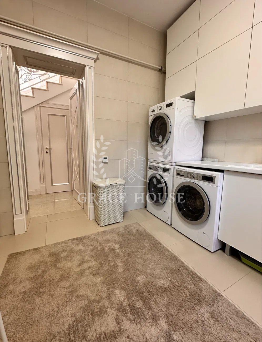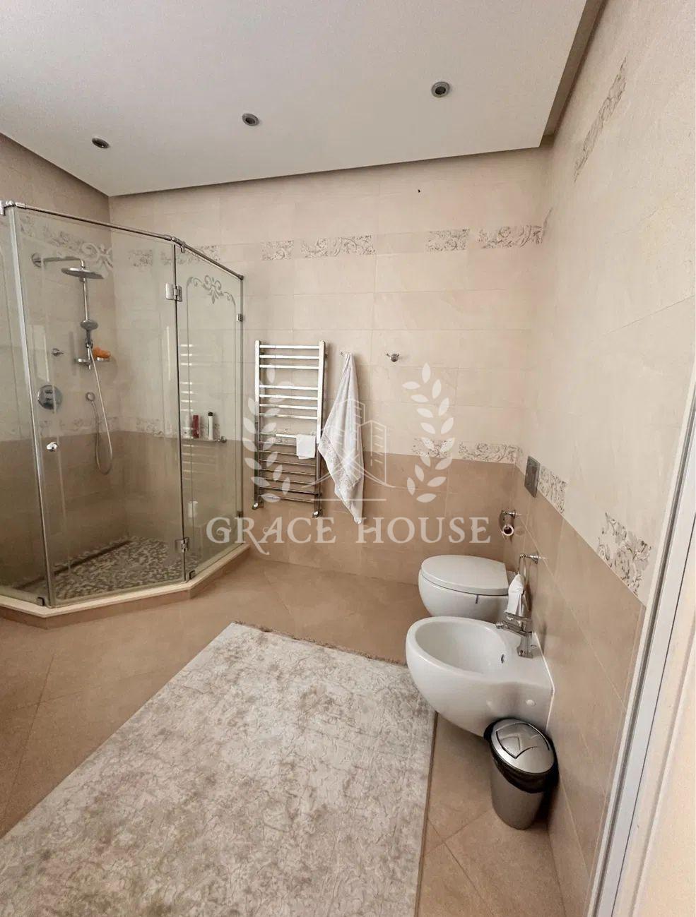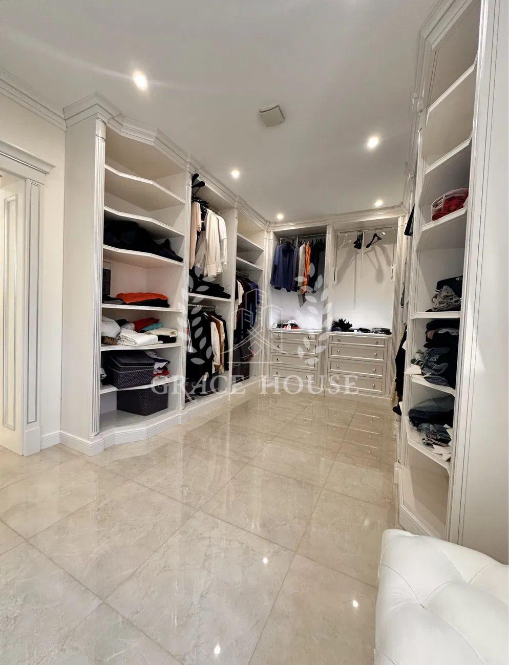 Розкішна господарська спальня з власним санвузлом та гардеробною, дитяча кімната, гостьова кімната з гардеробною, загальний санвузол з джакузі, велика гардеробна. Підлога в кімнатах з паркетної дошки. В санвузлах підігрів підлоги. Стіни оброблені преміум шпалерами та елітними шпалерами з шовковою ниткою.