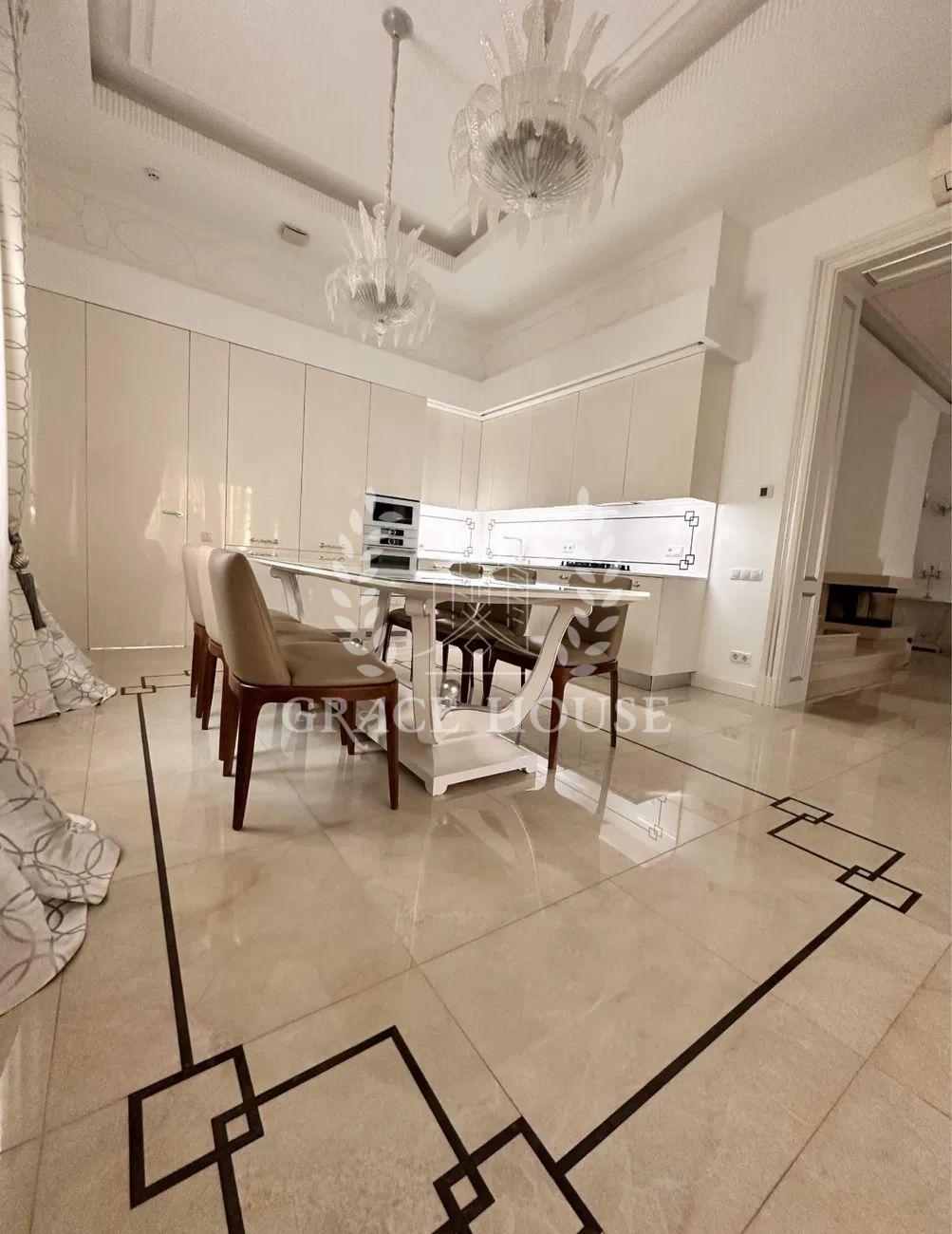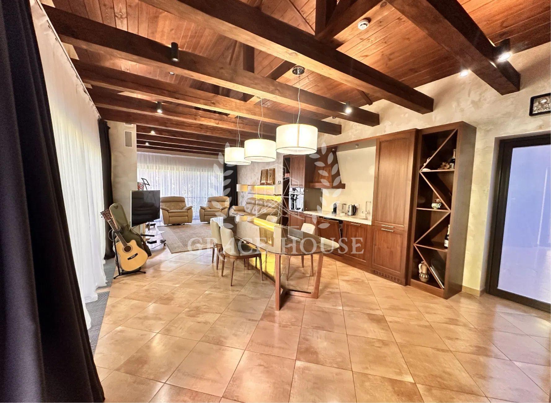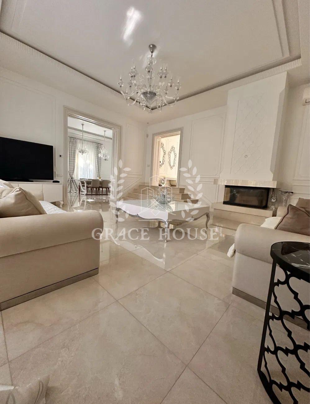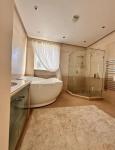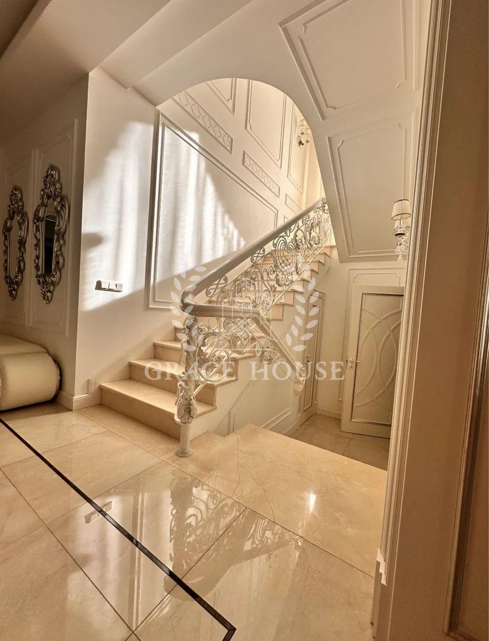 Розкішна господарська спальня з власним санвузлом та гардеробною, дитяча кімната, гостьова кімната з гардеробною, загальний санвузол з джакузі, велика гардеробна. Підлога в кімнатах з паркетної дошки. В санвузлах підігрів підлоги. Стіни оброблені преміум шпалерами та елітними шпалерами з шовковою ниткою.