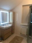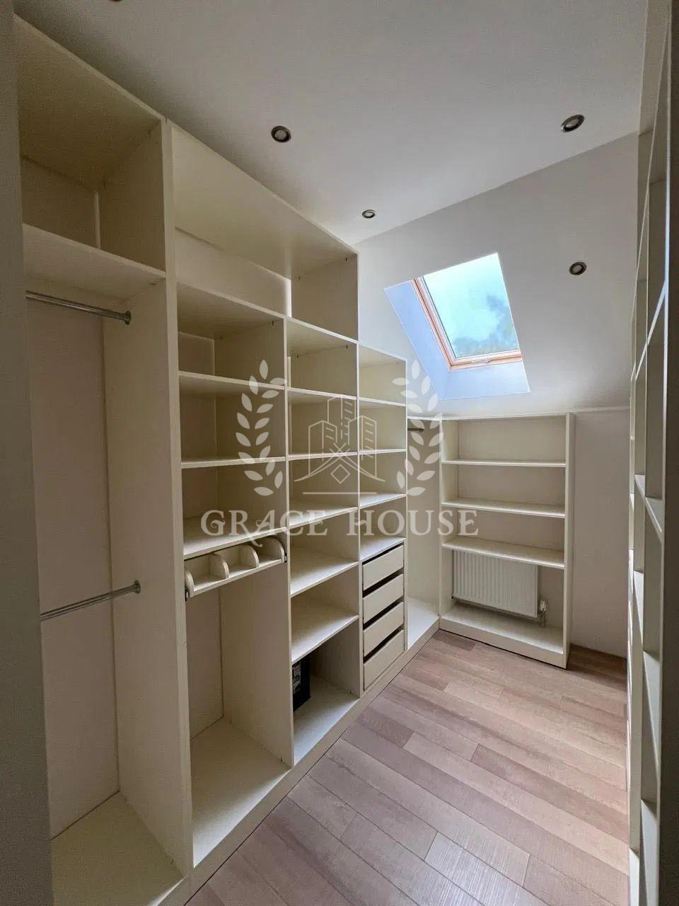 На другому поверсі: три спальні, одна доросла із виходом в гардеробну кімнату, дитячий кабінет та дві дитячі спальні також санвузол з душовою кабіною та зона для зберігання речей (комора).Також ще одна комора розташована під сходами, вхід до неї з заду будинку (з вулиці).