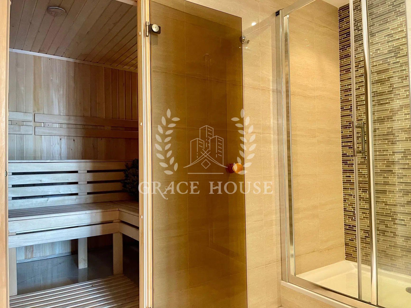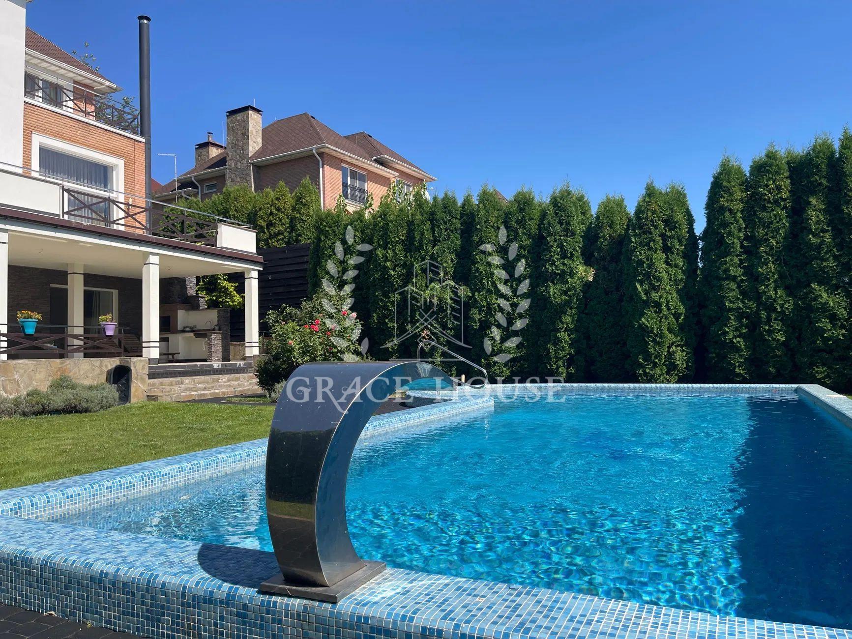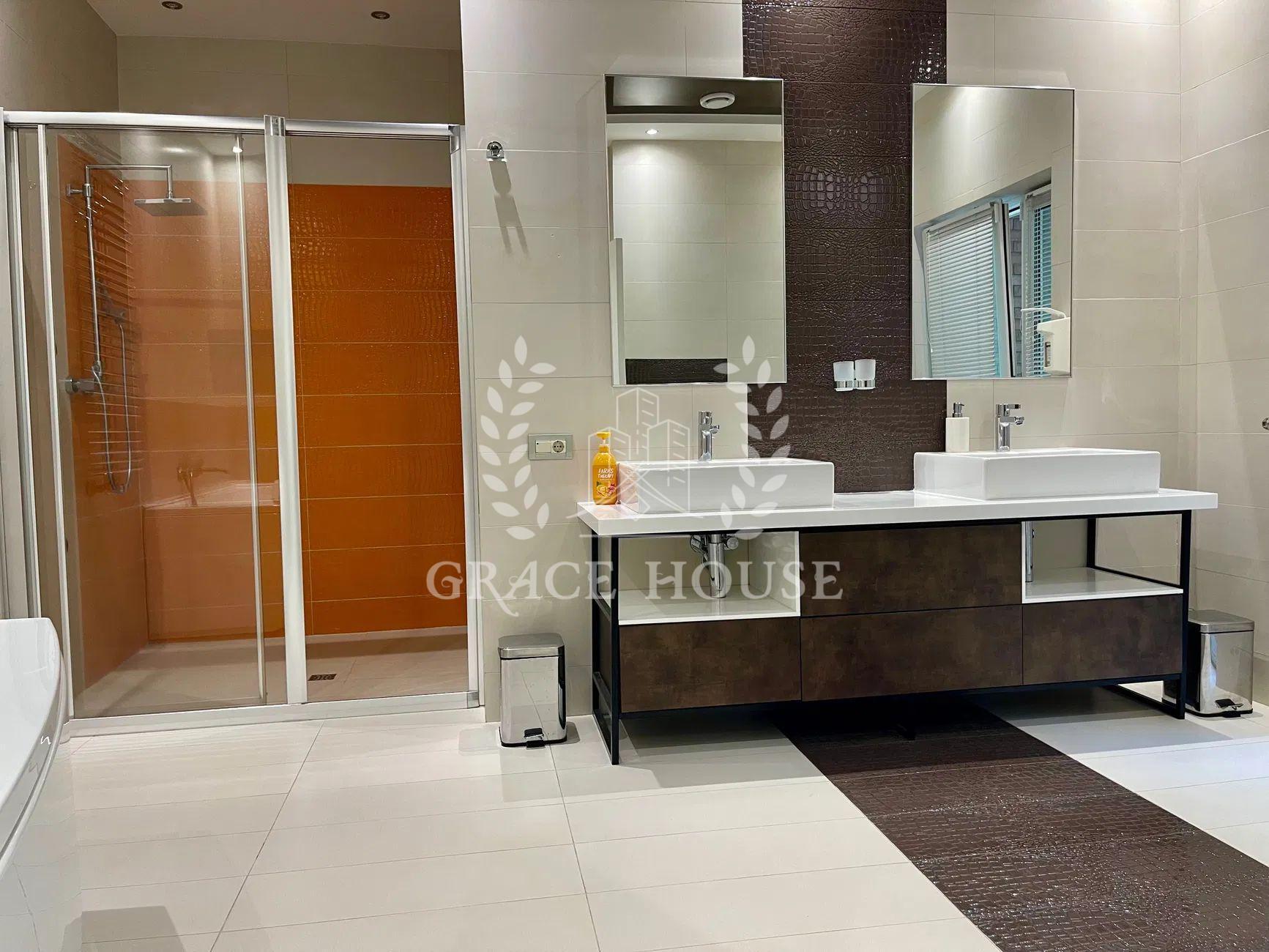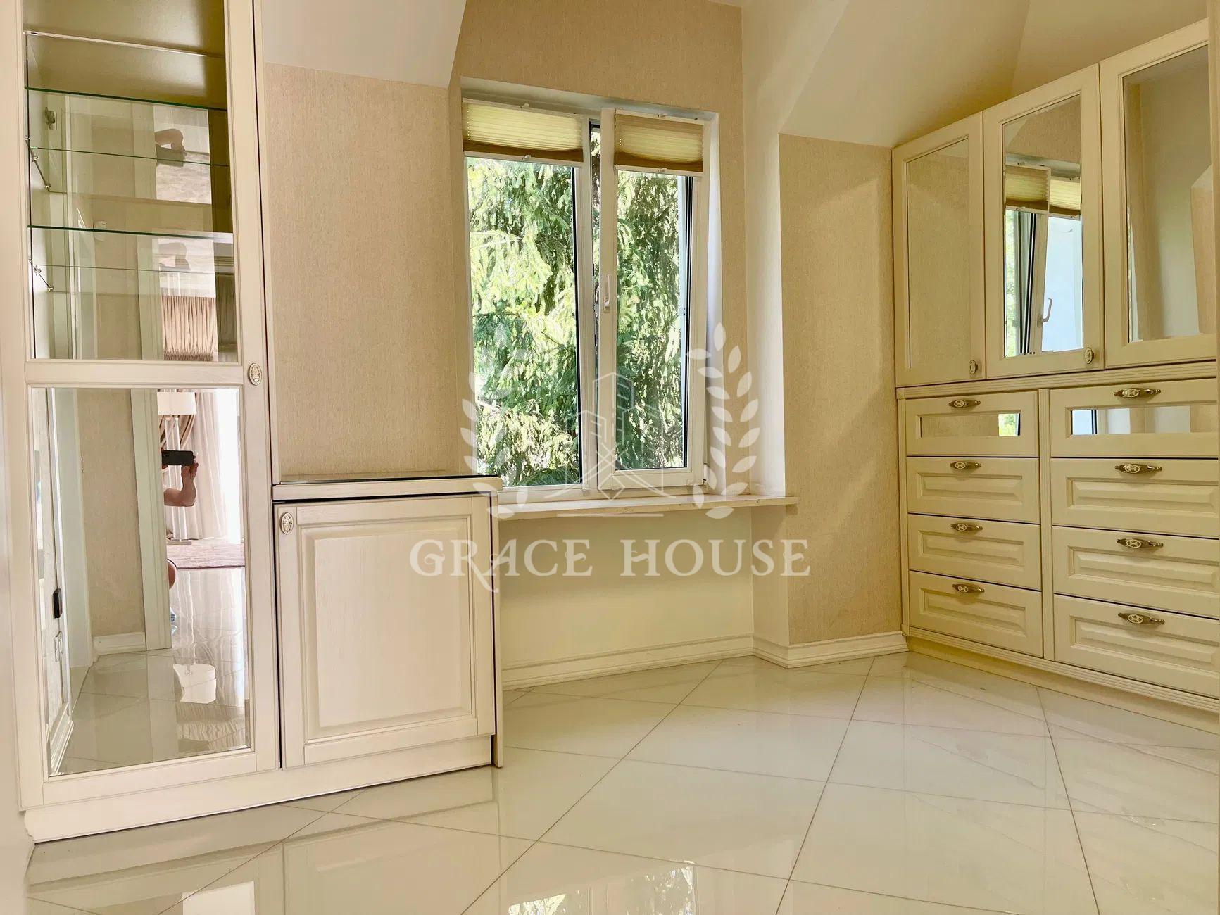 Планування: вітальня, кухня-студія з виходом у двір, три спальні кімнати, кабінет (четверта спальня), 4 сан.вузла 3 гардеробні кімнати, SPA-зона з сауною та кімнатою відпочинку, гараж на 2 авто, цокольний поверх з великою гардеробною для сезонного одягу.