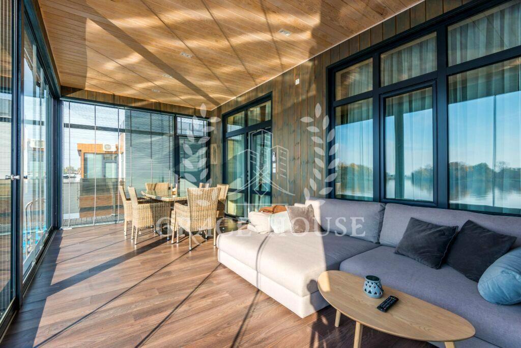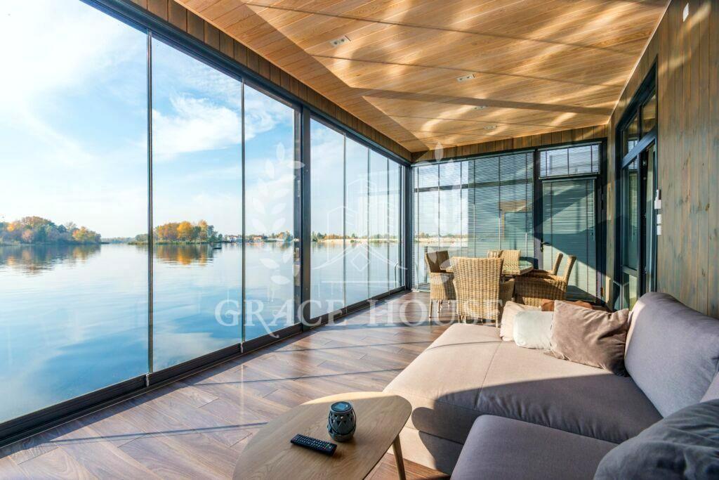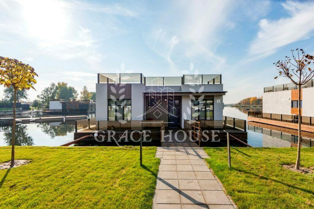 Оренда будинку на воді Золоче Вишенки Сучасний одноповерховий будинок на плаву з плоским дахом, площею 120 кв.