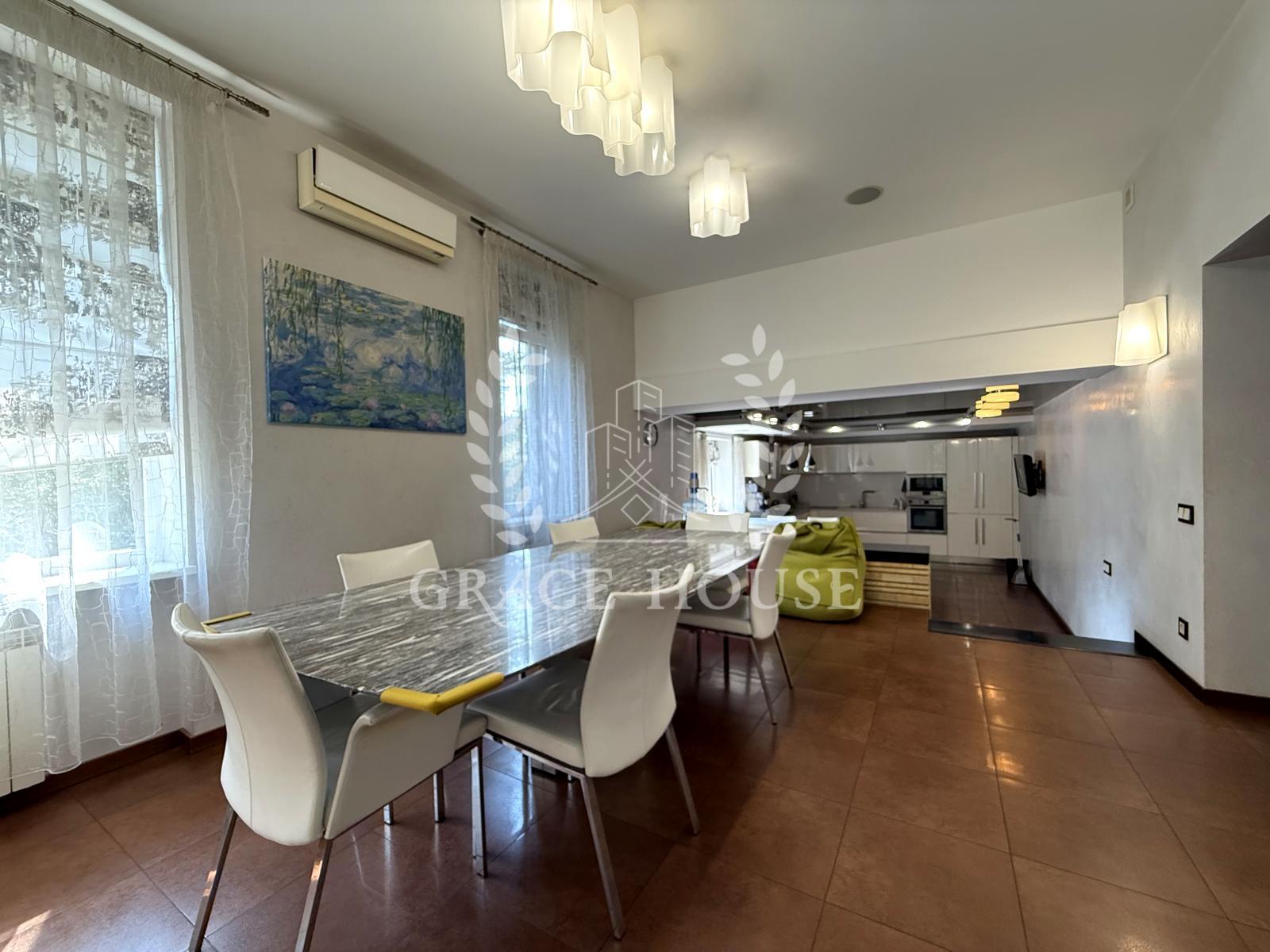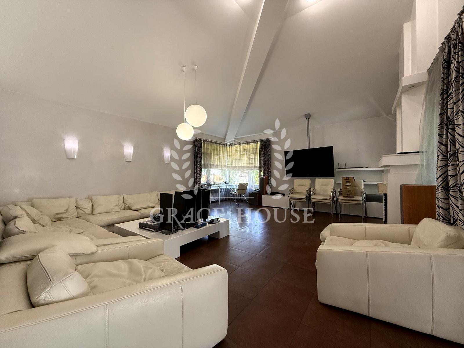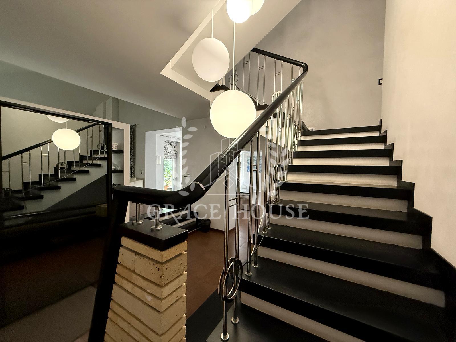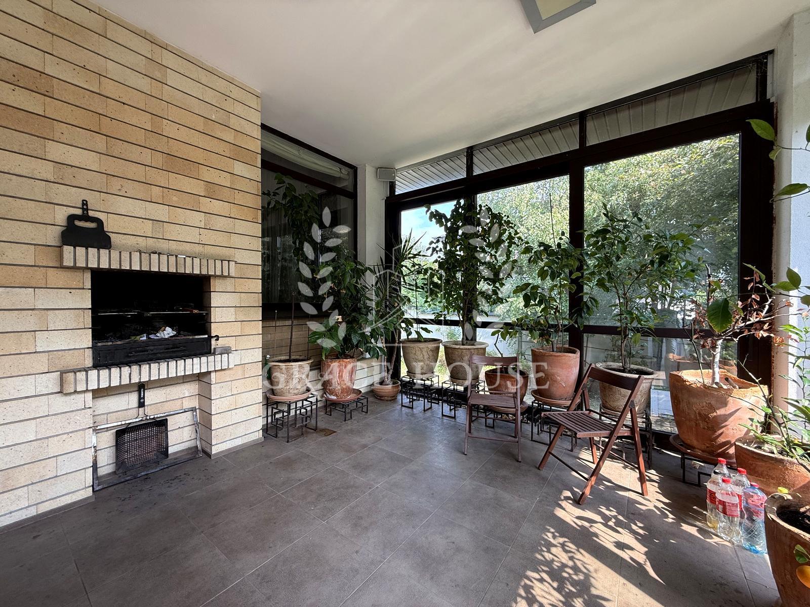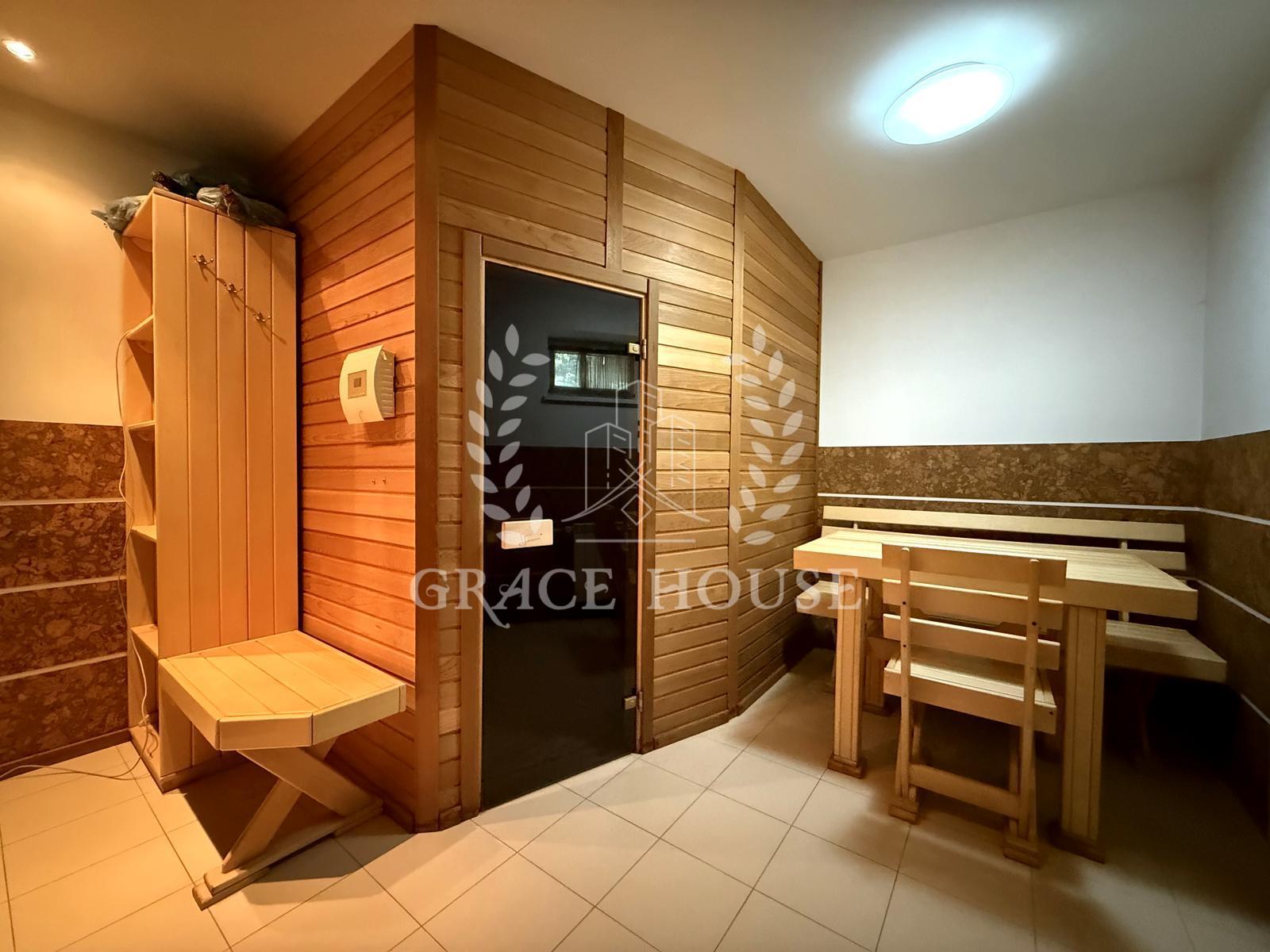 Вітальня з каміном, кухня-їдальня, зимовий сад, 4 спальні + кабінет, спортзал, фінська сауна, гараж.
