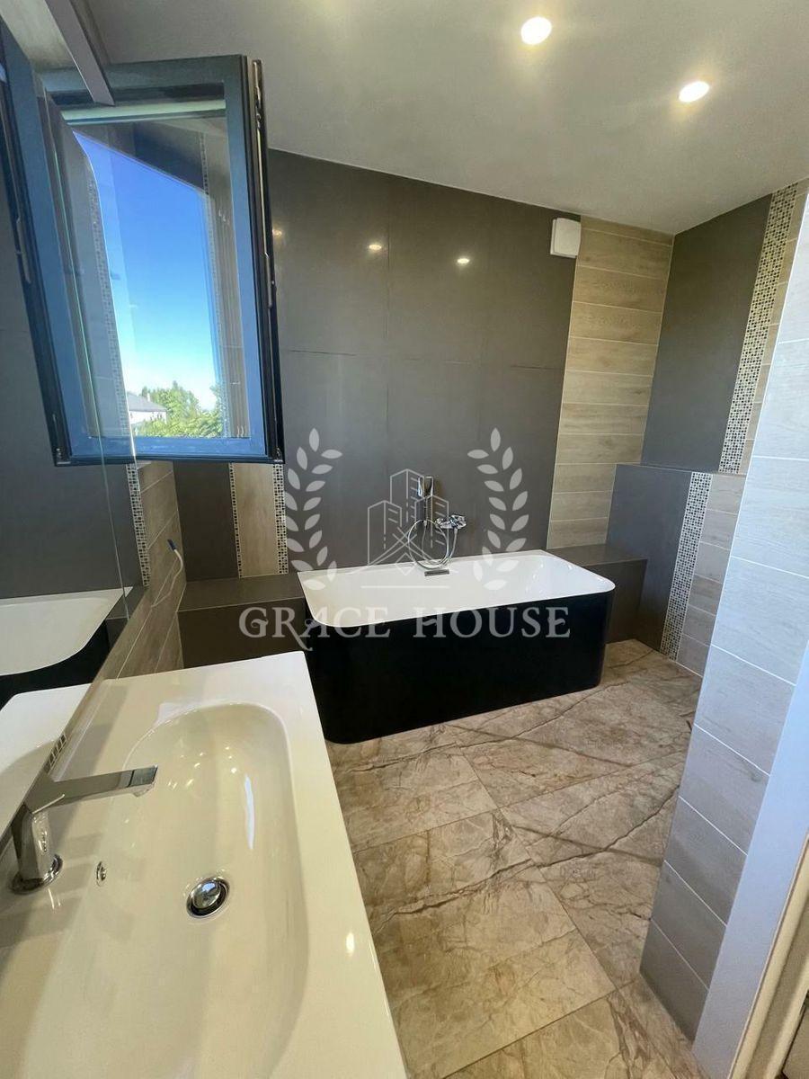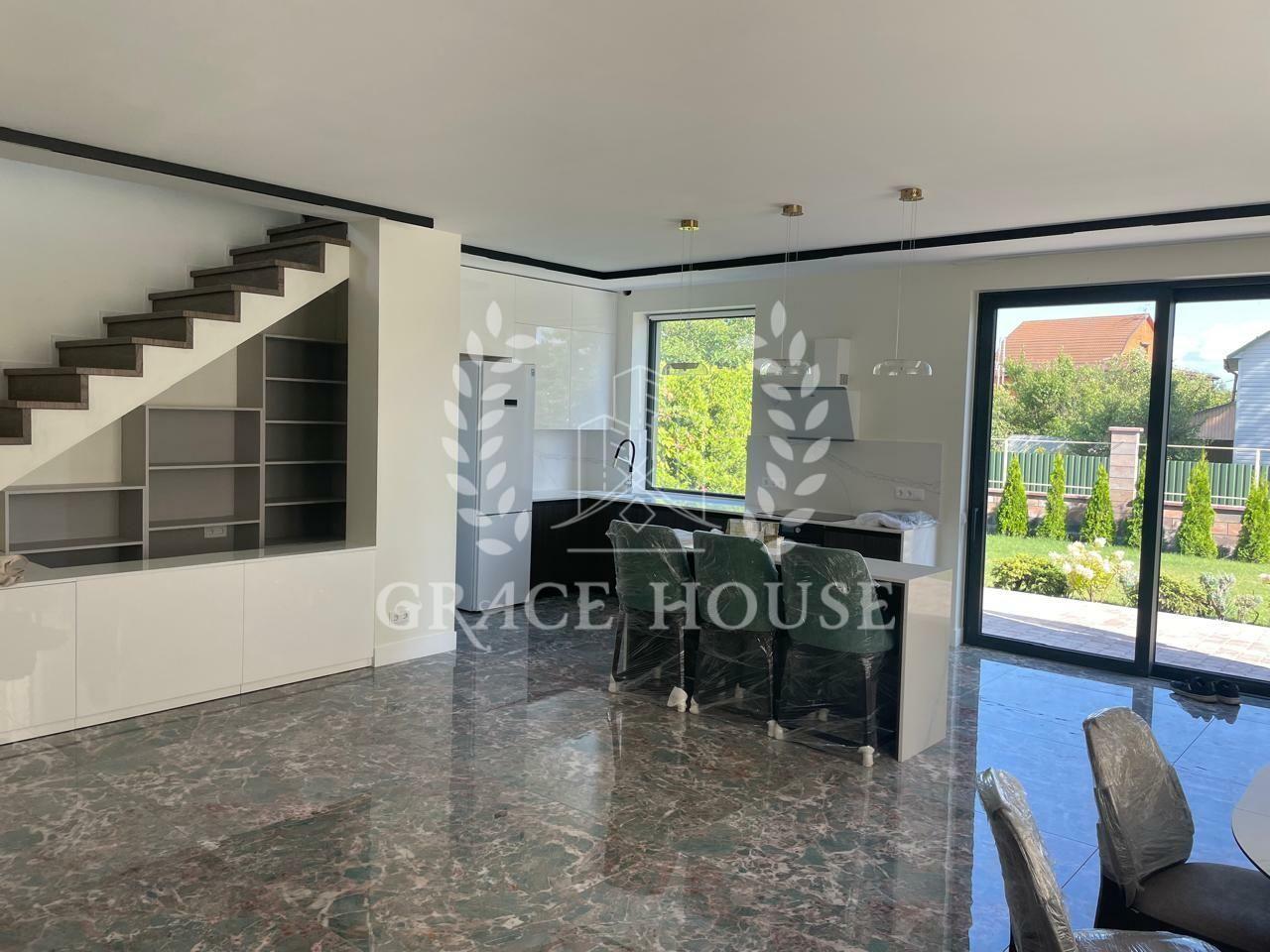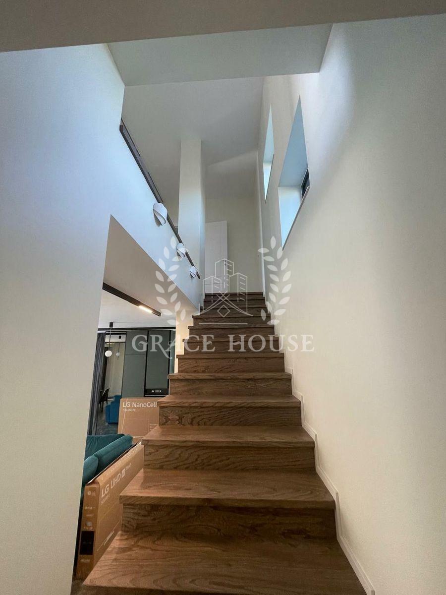 На втором этаже – 2 спальни с двуспальными кроватями, комната под кабинет или детская комната, 2 сан узла возле спален, большая терраса с видами Днепра.