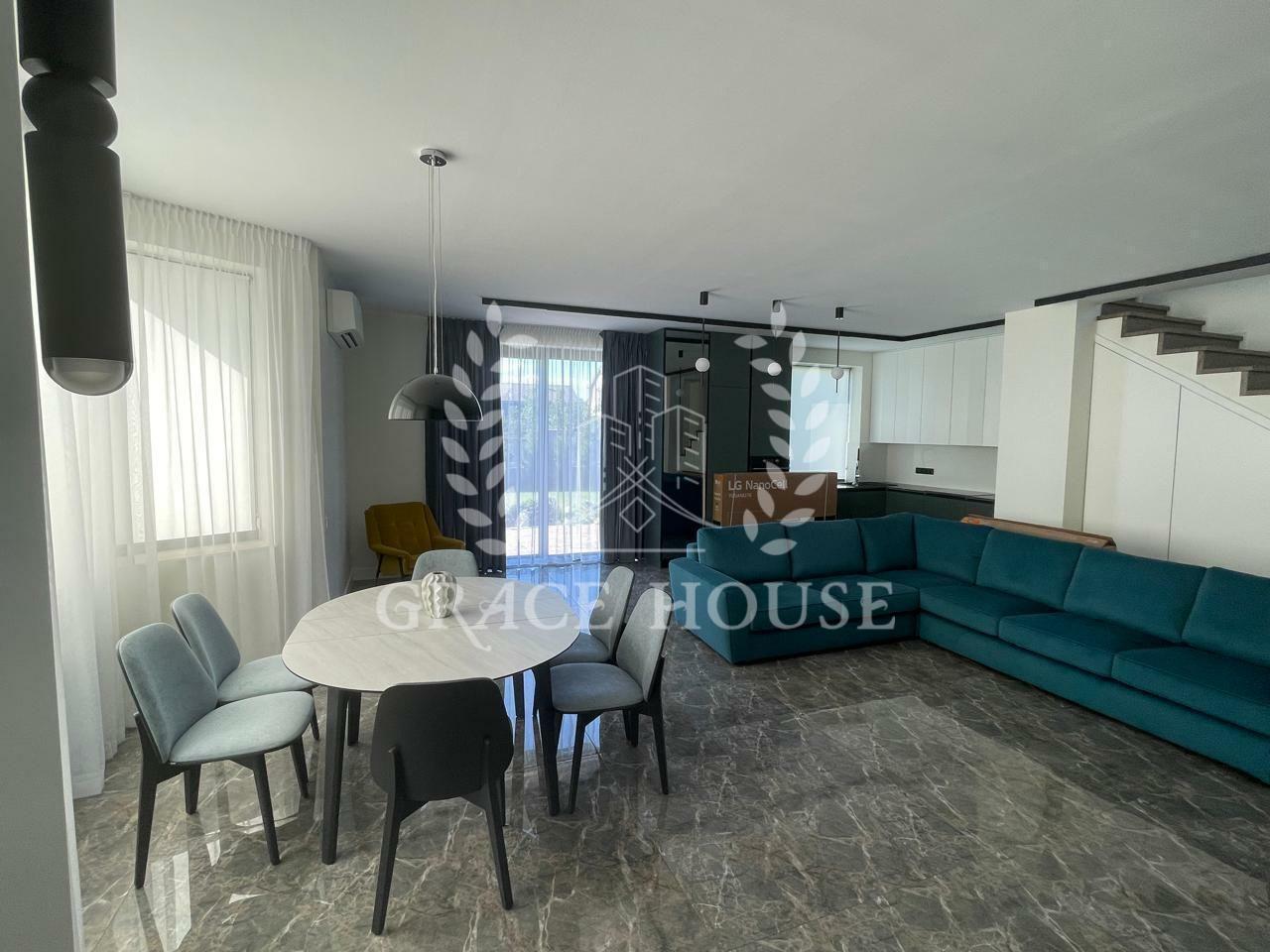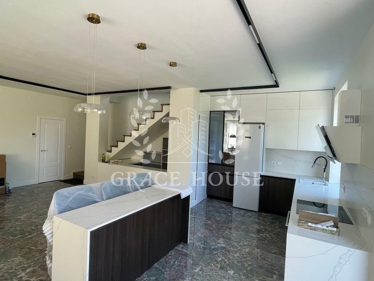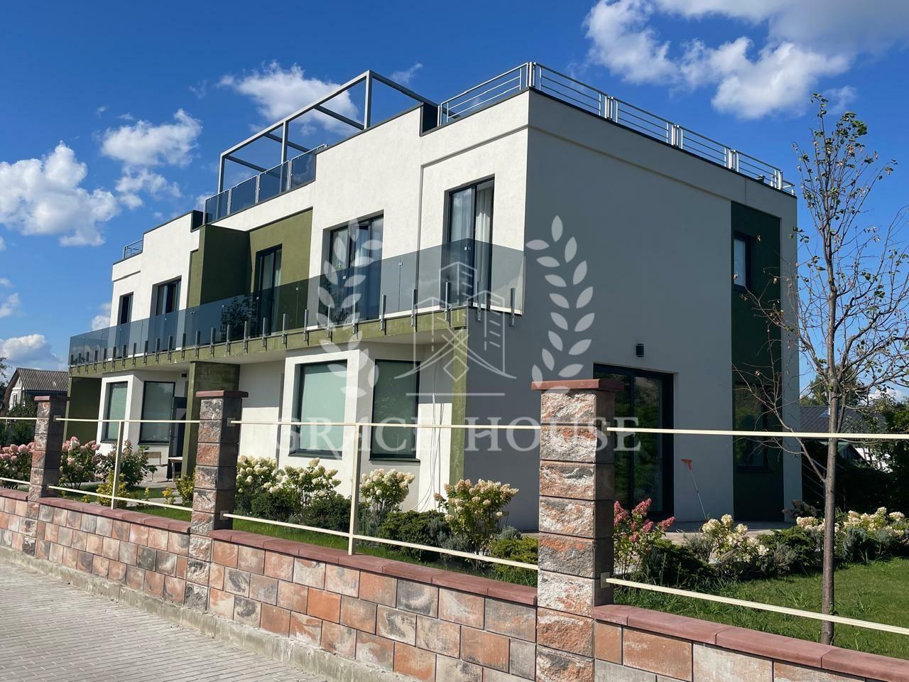 На втором этаже – 2 спальни с двуспальными кроватями, комната под кабинет или детская комната, 2 сан узла возле спален, большая терраса с видами Днепра.