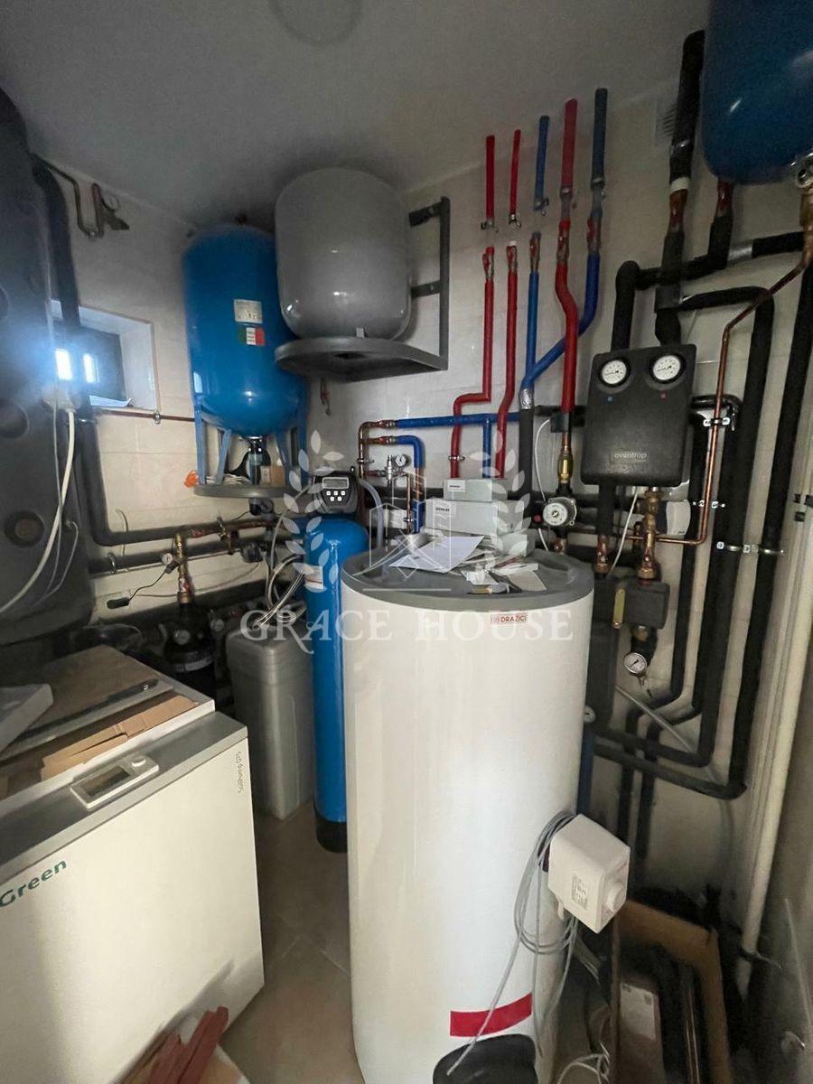 На первом этаже – большая гостиная, кухня, островок, сан узел, электрокотел, бойлер.