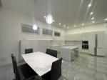 На кухне, в гостиной, в зале и санузлах изразец (Италия), пол с подогревом. Мебель изготовлена по индивидуальному проекту.