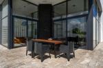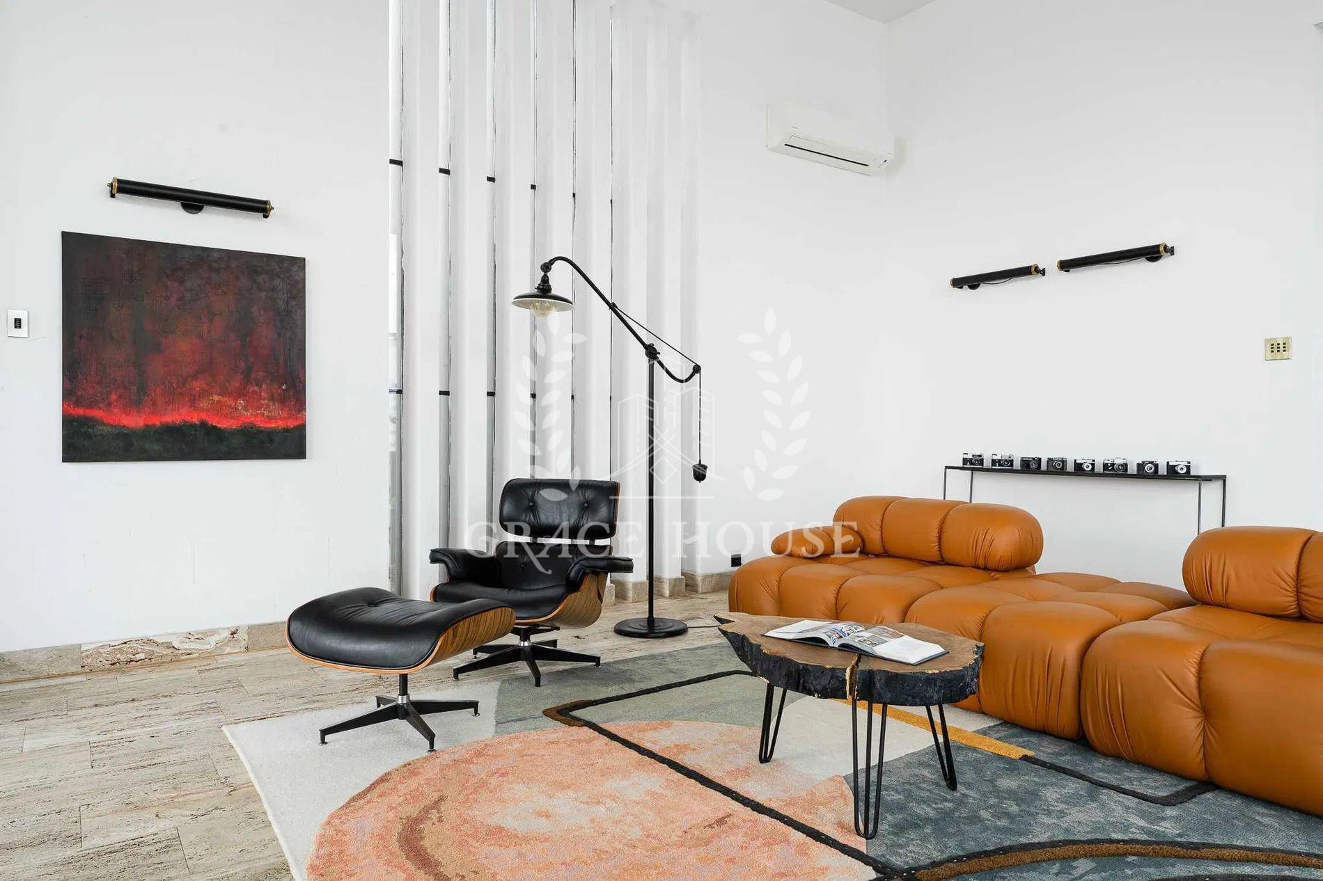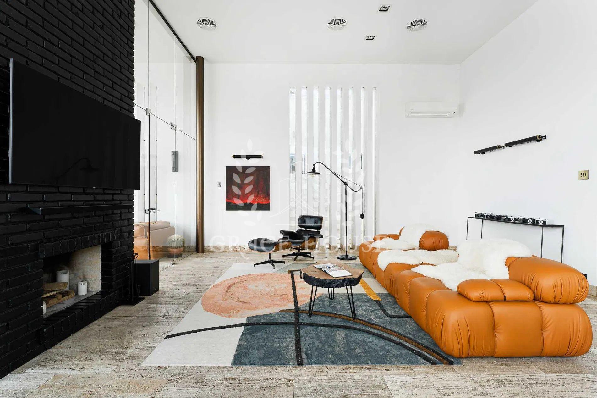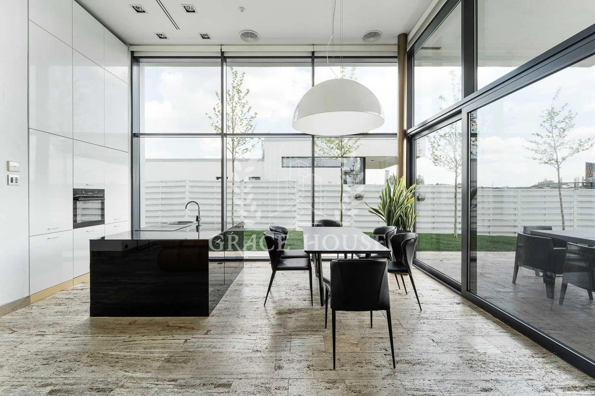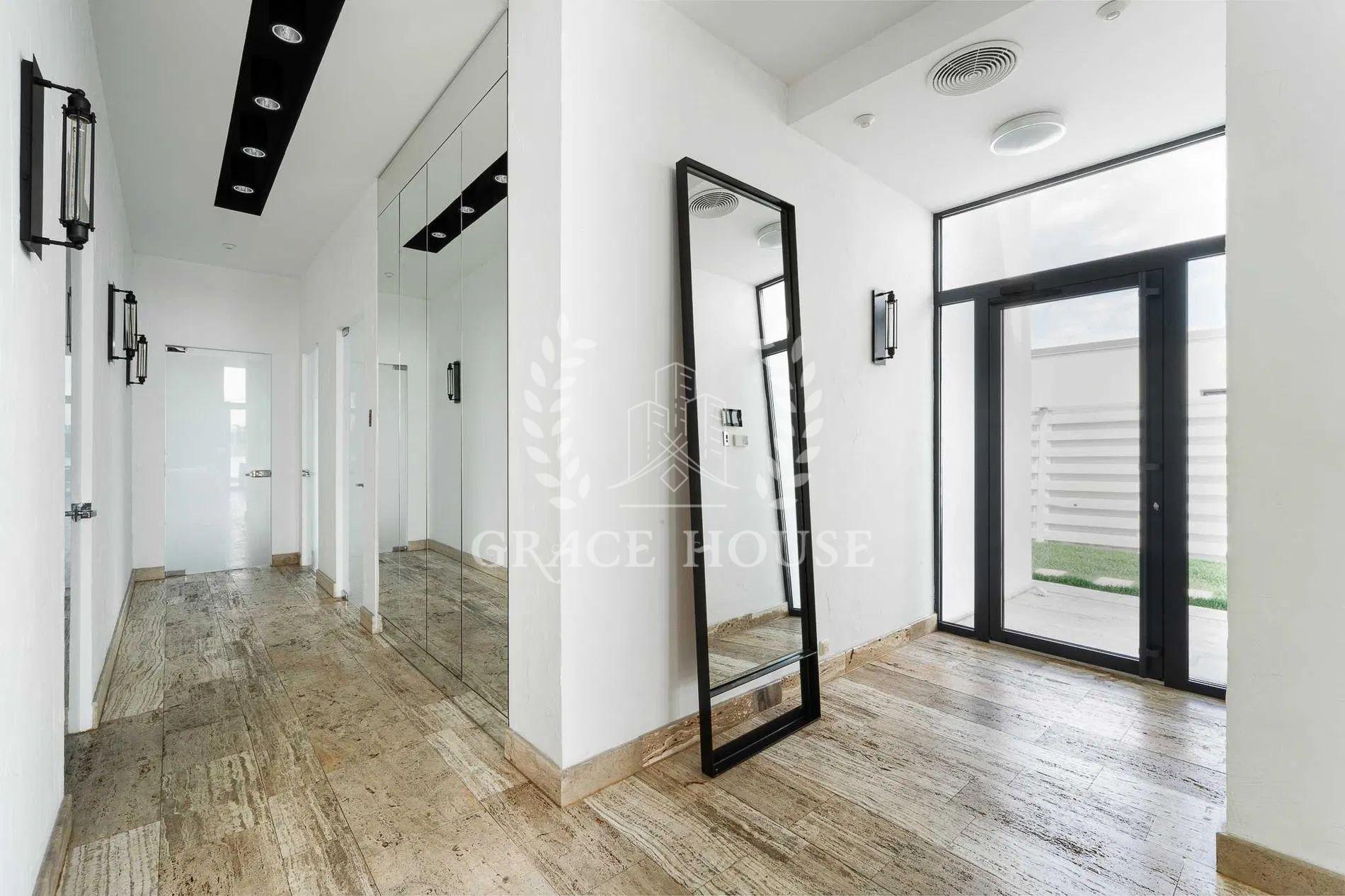 У будинку передбачено простору кухню-вітальню з високою стелею (4 м), головну спальню з власною ванною та гардеробною, дві окремі спальні, кабінет/кімнату відпочинку, два санвузли та низку технічних приміщень. Оселя повністю укомплектована меблями та готова до проживання без додаткових вкладень.