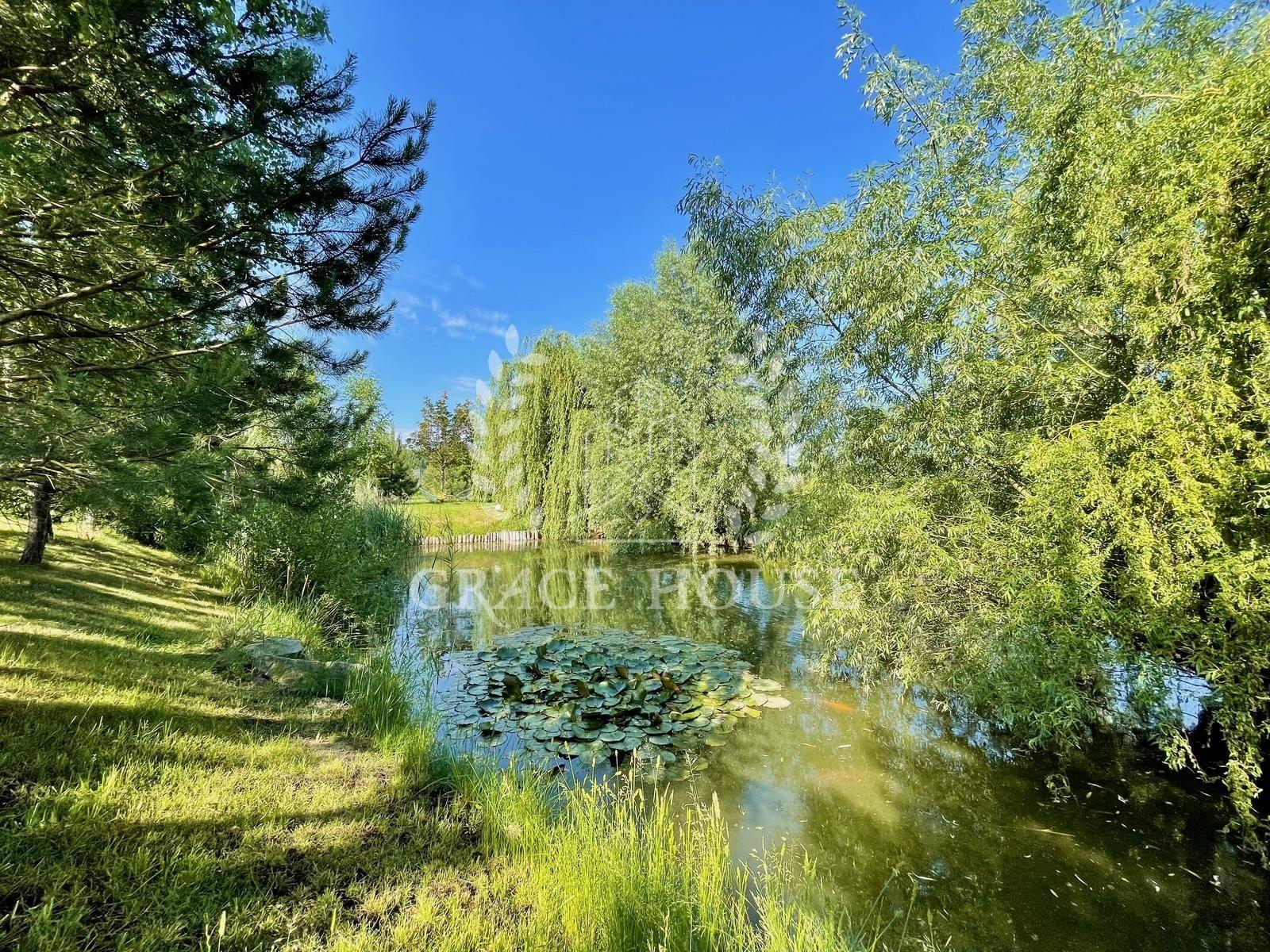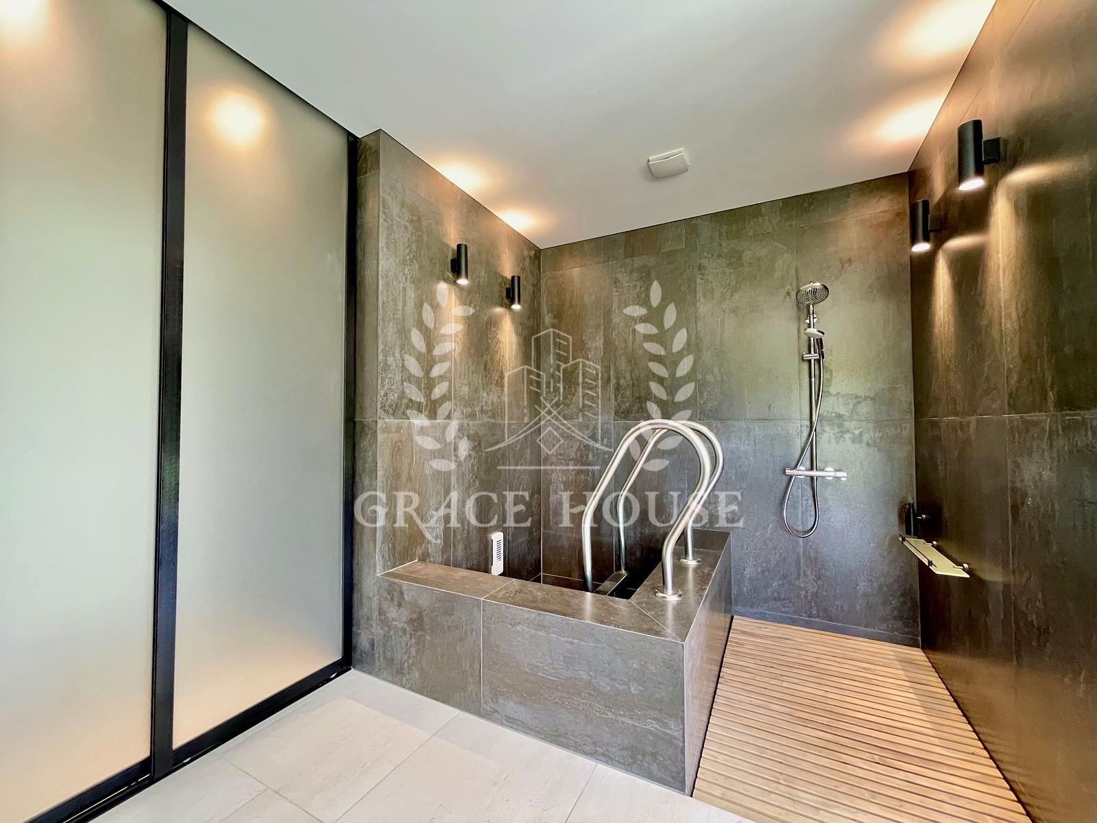 Территория полностью в собственности: ландшафтный дизайн, озерцо, зона BBQ, открытый бассейн с подогревом и противотоком, гараж на 2 авто + 2 паркоместа во дворе.