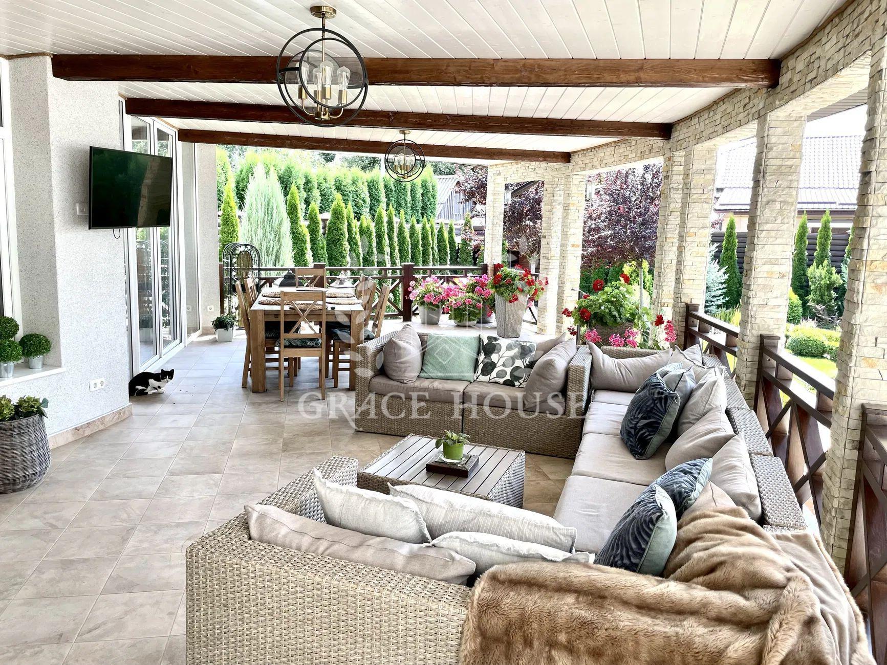 Маєток побудований з якісних, натуральних матеріалів, дорогі меблі та техніка провідних світових виробників, ексклюзивний дизайн інтерʼєру, що дозволяє почуватися комфортно та затишно.