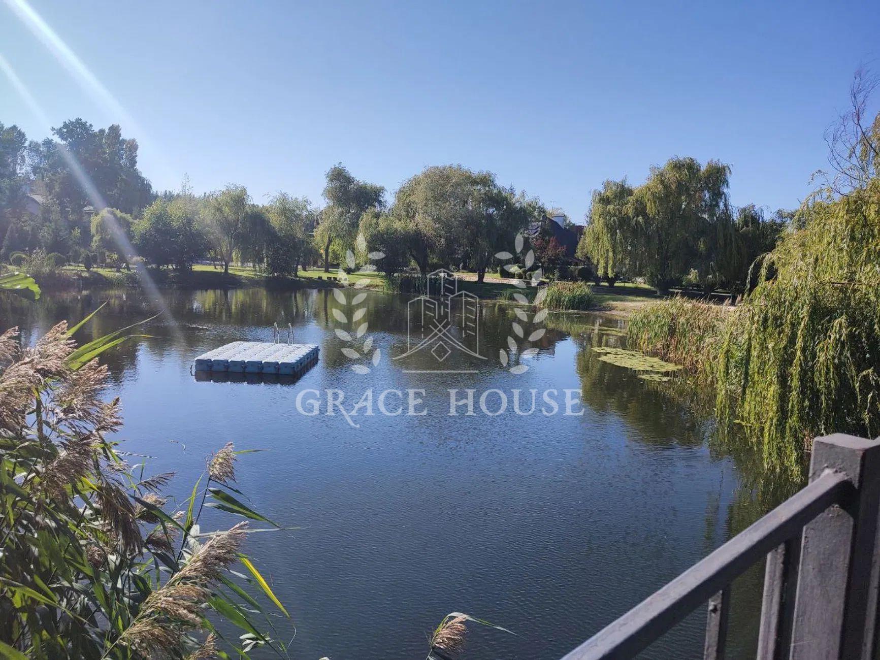Все коммуникации, в доме газовое отопление, кондиционирование, скоростной интернет. На территории выполнен ландшафтный дизайн, озеленение, есть беседка - барбекю. Свой участок 4 сотки. Большая зона отдыха на гектаре земли с озером и пляжами