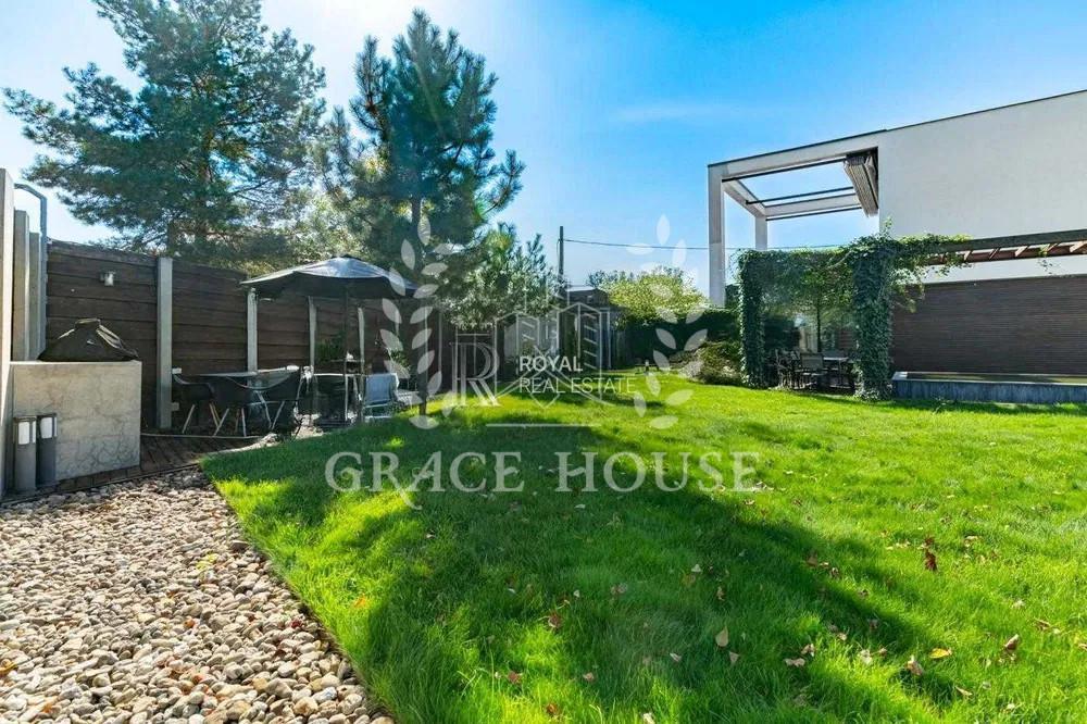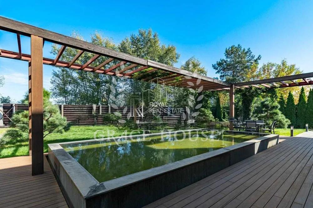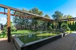 10 соток озелененного участка ландшафтным дизайном, уютной барбекю-зоной, открытым бассейном и террасой.