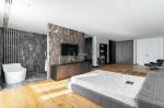 Интерьер олицетворяет собой оригинальное сочетание стилей хай-тек и минимализма, создавая атмосферу высокой элегантности.