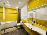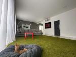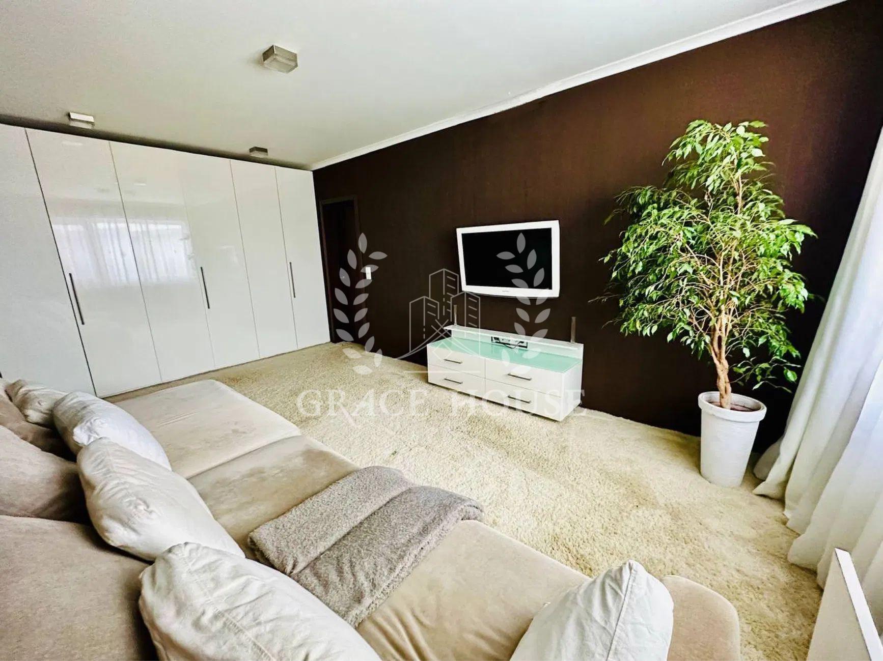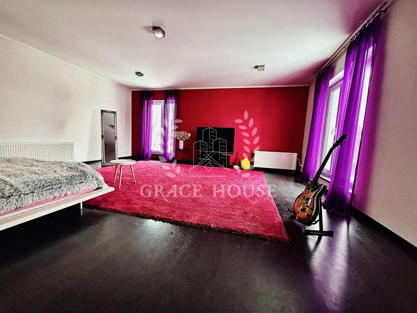 На першому поверсі коридор, велика студія, кухня, кабінет, санвузол з душевою, вихід на задній двір з терасою, вихід в гараж з коридору. На другому 5 кімнат, велика ванна кімната з санвузлом, гардеробна, техприміщення з пральною, сушильною машинами. Другий та перший поверхи оснащені кондиціонерами. Будинок наповнено всім необхідним для комфортного проживання: посуд, кухонне приладдя, посудомийна машина, рушники, постіль і т.д.