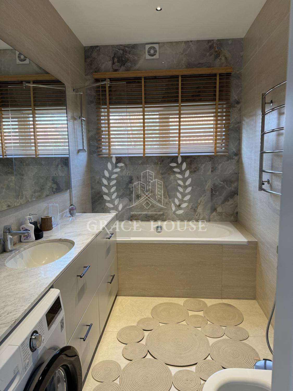 Дом 160 кв м - гостиная комната, гостиная, кухня, столовая, 2 спальные комнаты, санузел из каждой спальни, гардеробная, гостевая комната, хоз комнаты