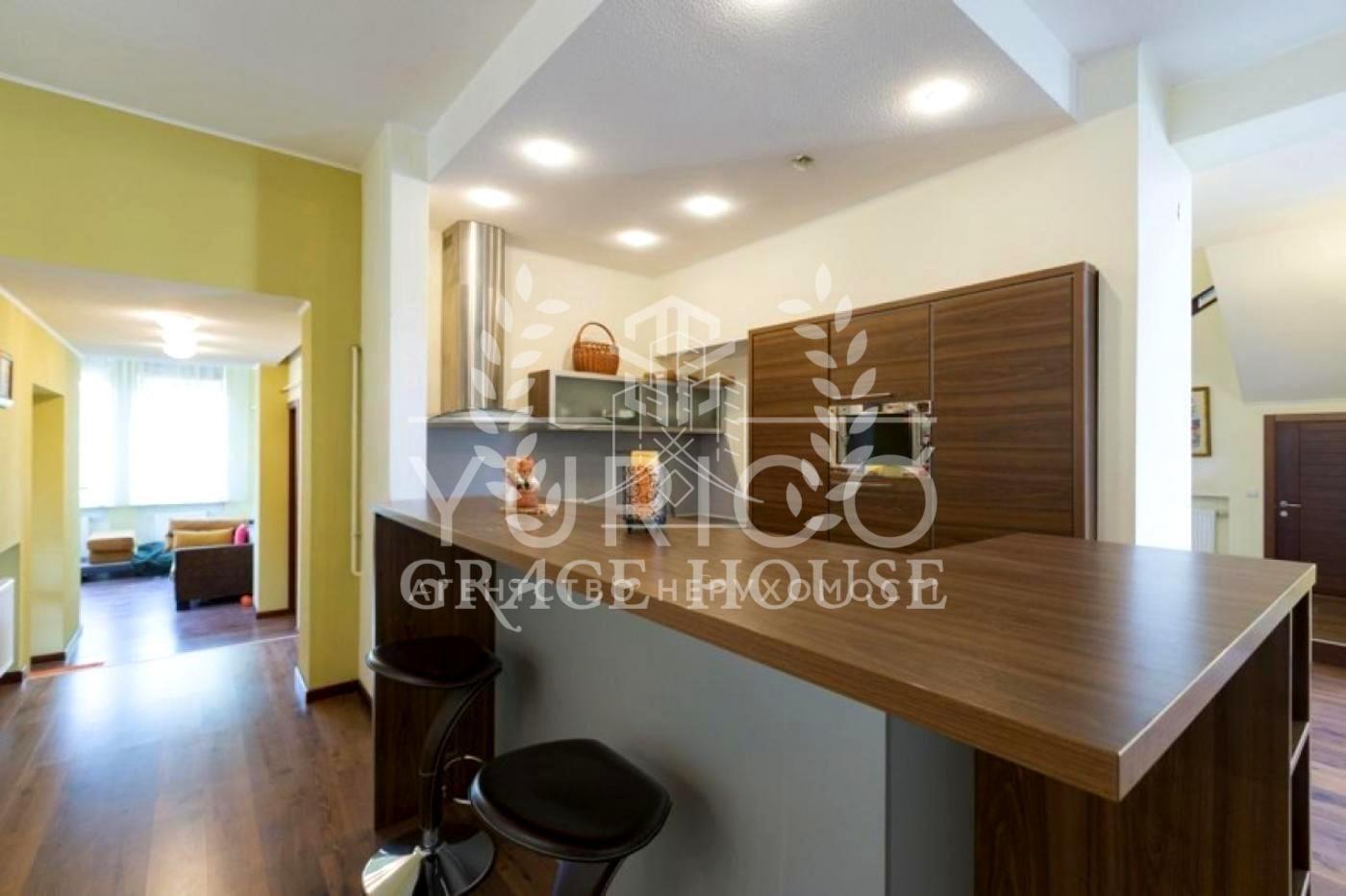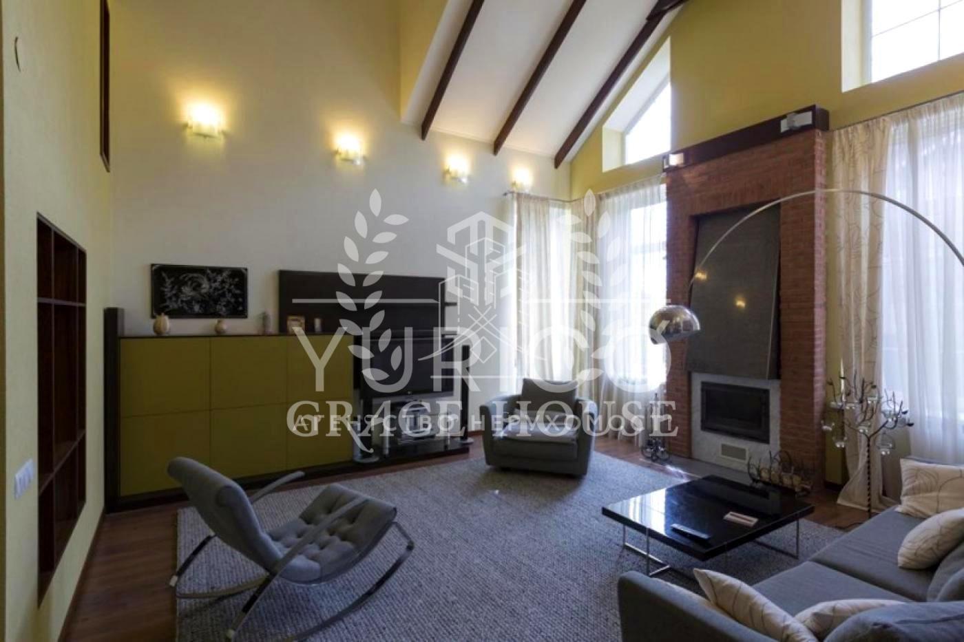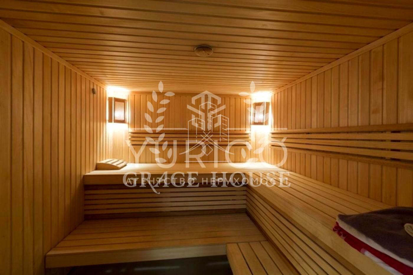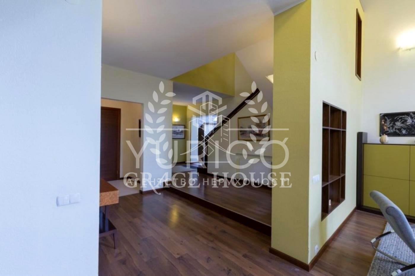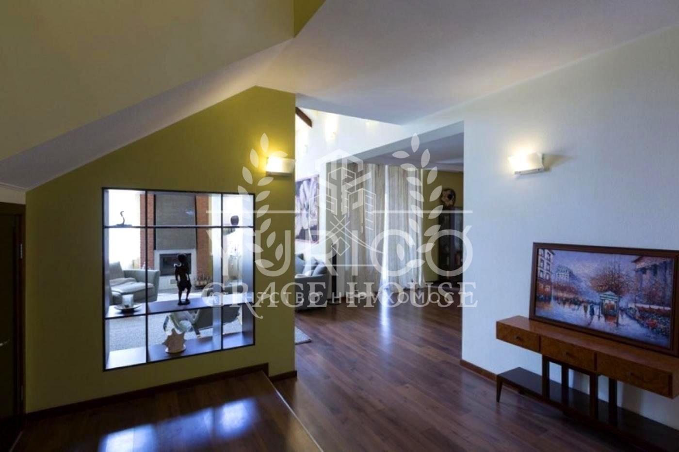 1-й поверх: гостьова кімната з каміном, друге світло, кабінет, кухня студія з виходом на терасу та зоною барбекю, два сан.вузли, сауна, гараж на два авто.
