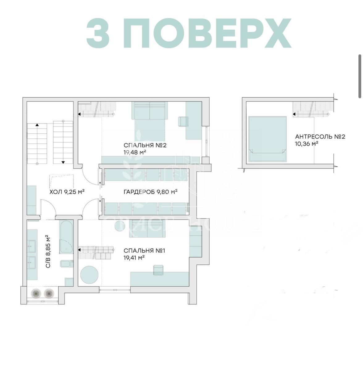 -3 этаж:2 детских спальни ,гардероб,сан узел