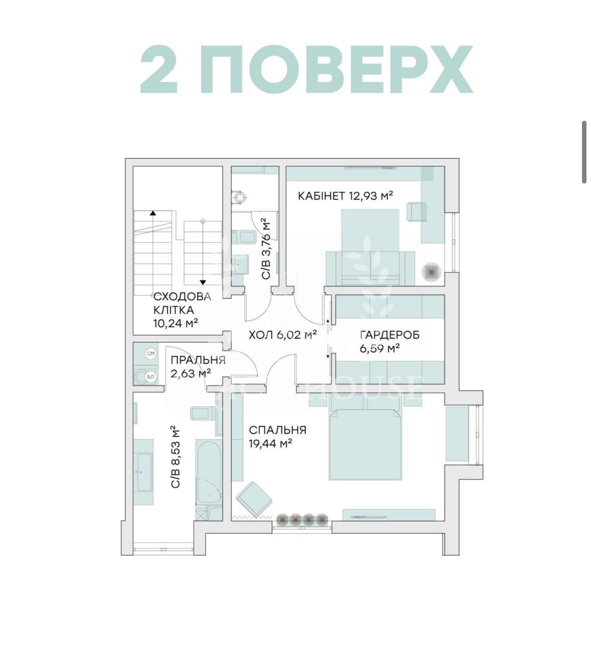 -2 этаж главная спальня,гостевая спальня (кабинет),гардероб,2 отдельных полноценных сан узла,постирочная